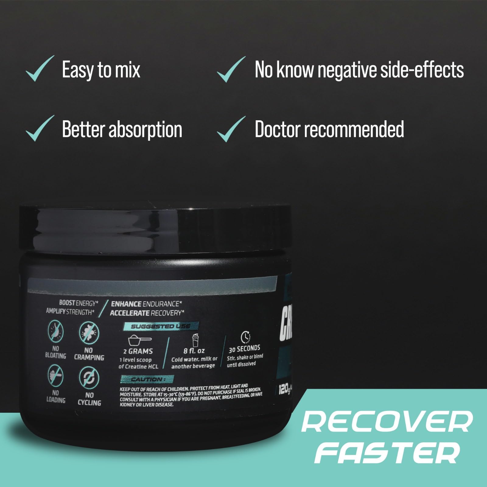 - ENHANCED SOLUBILITY AND ABSORBPTION - Our Creatine HCL supplement stands out with its superior solubility and absorption. This means your body can utilize the supplement more effectively, leading to improved performance and faster recovery.