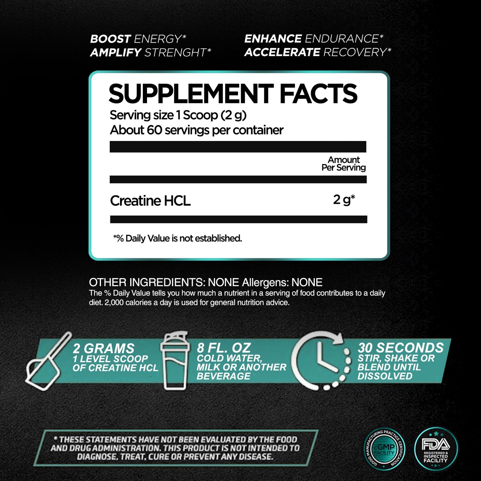 - BOOST ENERGY LEVELS - Our Creatine HCL not only boosts your performance but also aids in faster recovery. This allows you to get back to your physical activities sooner and with more vigor.