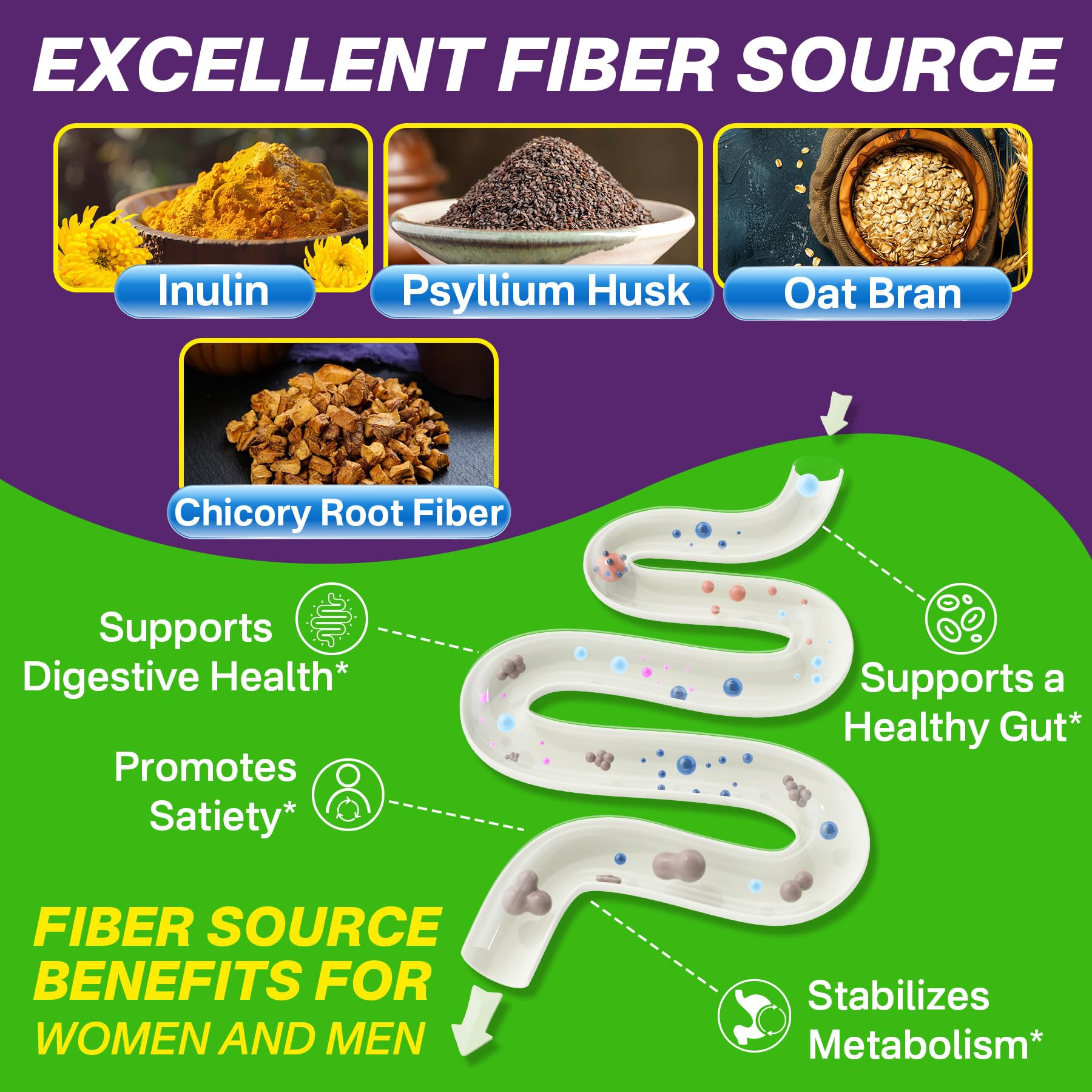 - [Excellent Source of Fiber - Boost Digestive Health]: Elevate your digestive health with our premium prebiotic fiber gummies! Each serving provides 4 grams of fiber from inulin, chicory root, psyllium husk, and gluten-free oat bran to promote regularity and gut wellness. Our 10 billion CFU probiotic blend balances gut flora, while vitamins D3 and B12 enhance nutrient absorption and energy. Perfect for women and men-start giving your digestive system the support it needs today!