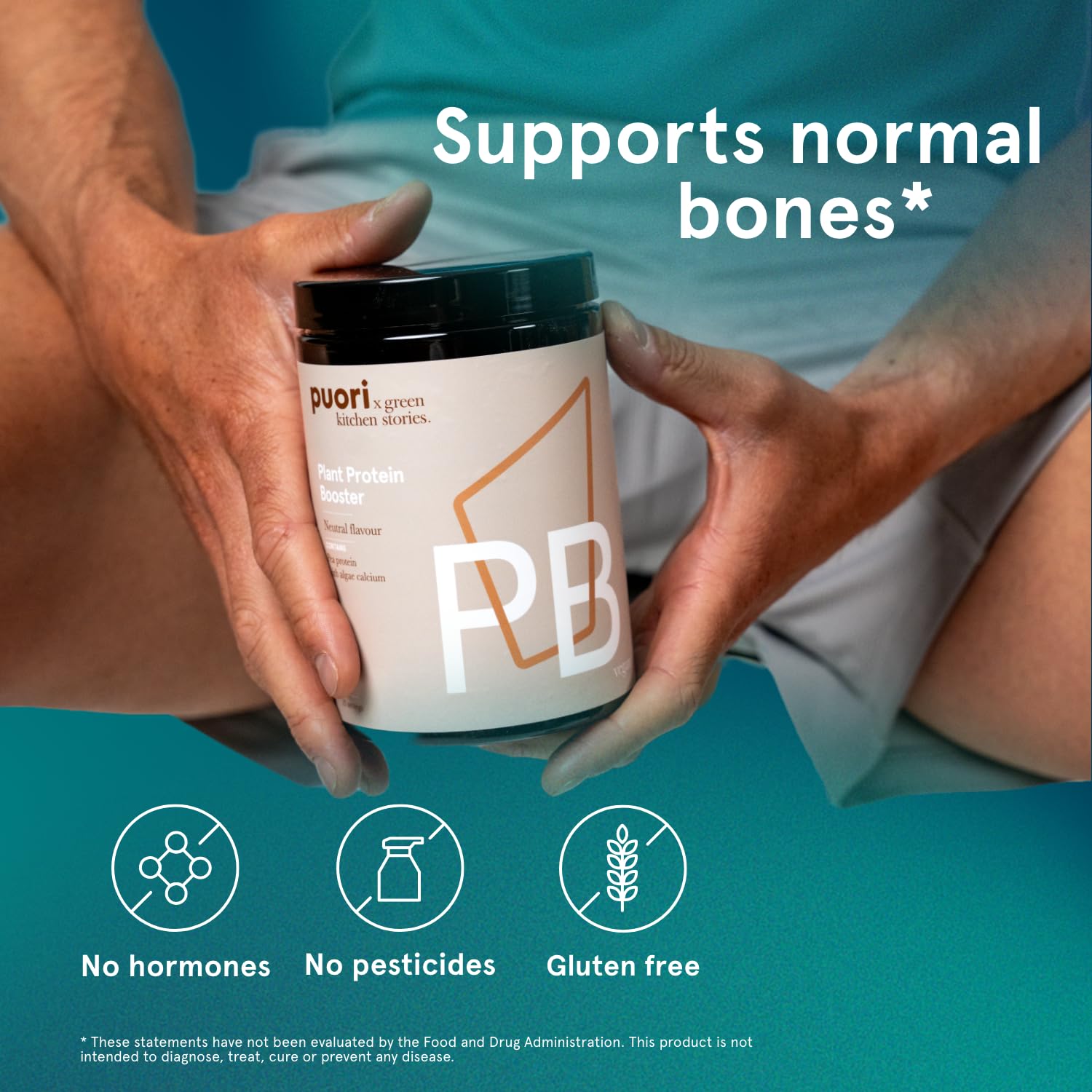 - WHY DID WE MAKE PB: Puori Plant Protein Booster is a calcium fortified vegan protein powder intended to be used as a booster in shakes and food recipes. We developed the product to make it easy for people eating a predominantly plant-based diet to reach the desired daily intake of protein and calcium.