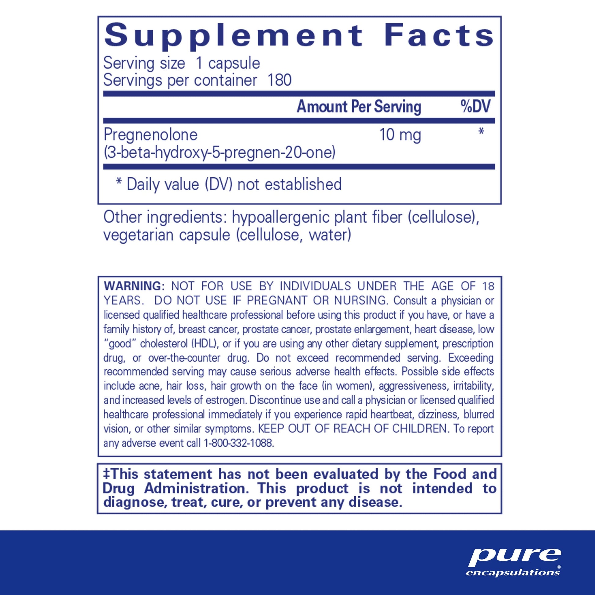 - Support Memory: Pure Encapsulations Pregnenolone 10 mg is a hormone precursor to support memory and an overall sense of well-being*