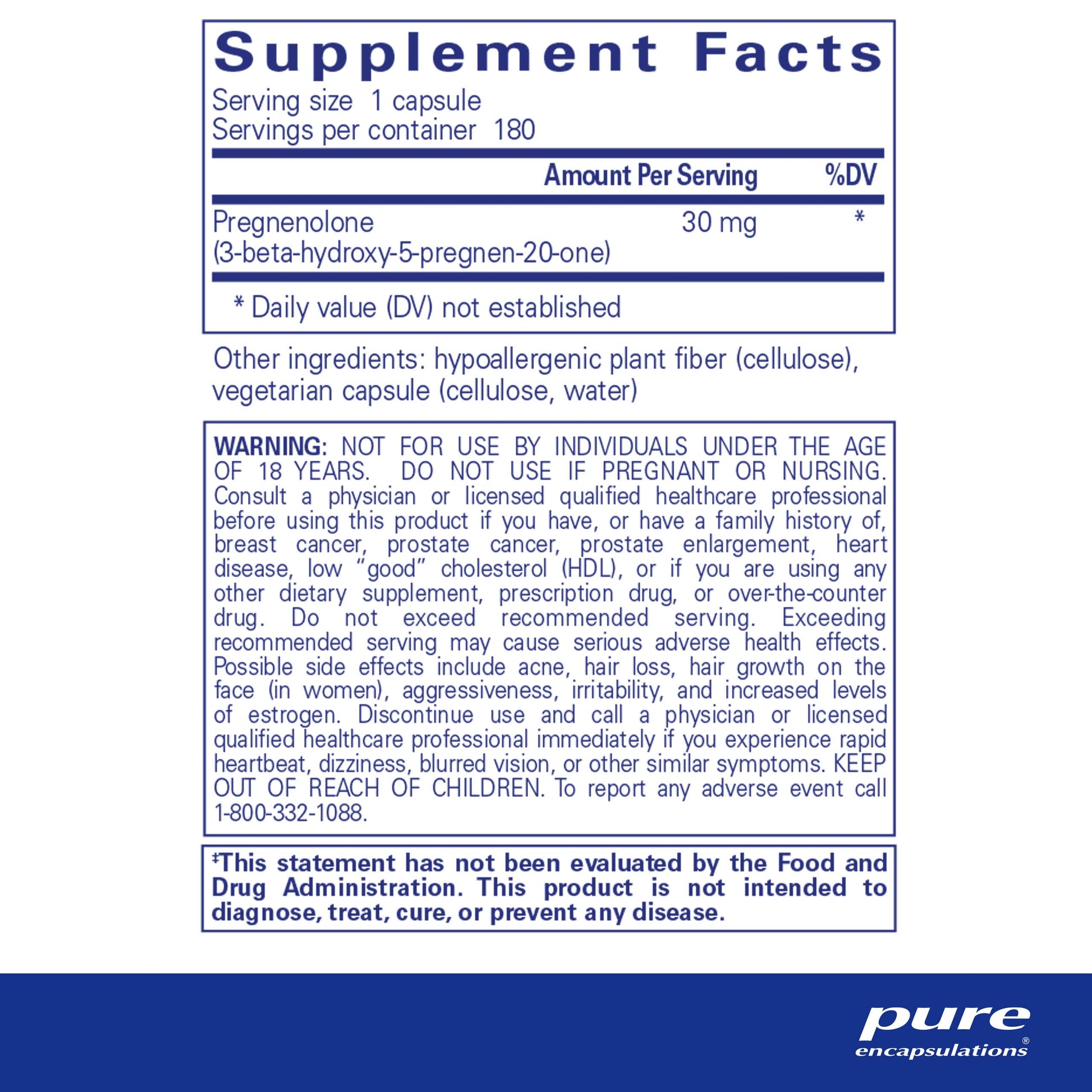 - Hormone Precursor: Pure Encapsulations Pregnenolone 30 mg aids in hormonal balance for women and men, supporting memory health and a sense of overall well being*