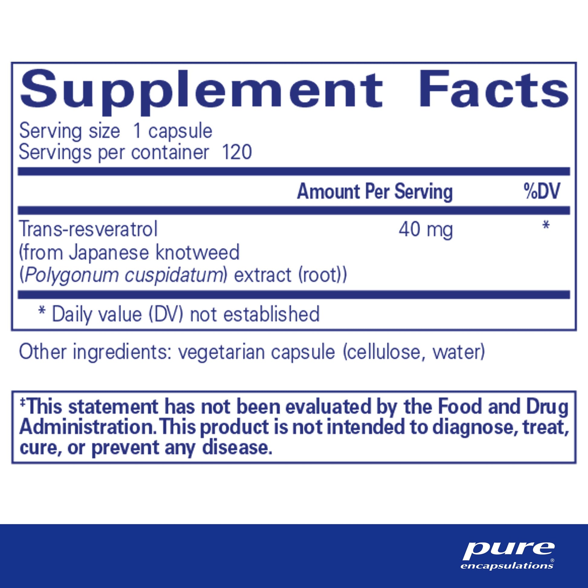 - Antioxidants Supplement: Pure Encapsulations Resveratrol contains 40 mg of trans-resveratrol per capsule for robust antioxidant support, aiding in mitochondrial health*