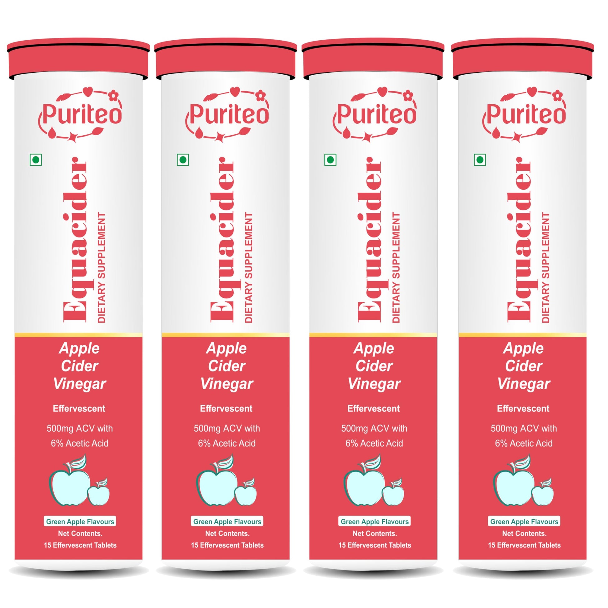 PURITEO-EQUACIDER Apple Cider Vinegar Effervescent Tablets with The Mother, Vegan, No Added Sugar, Non-GMO & Gluten-Free Tablet - (60 Tablets, Pack of 4)