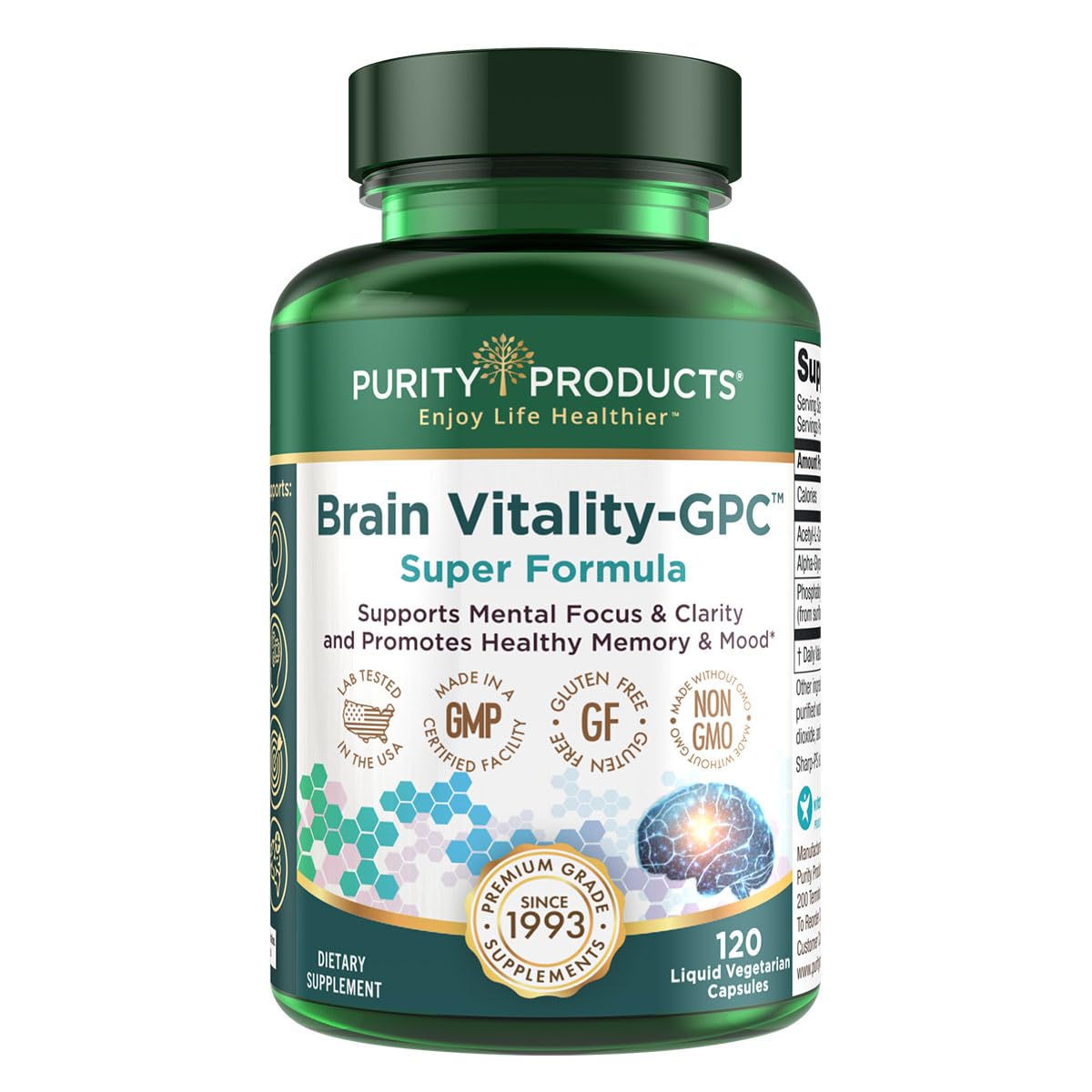 Purity Products Brain Vitality-GPC Super Formula Acetyl L-Carnitine HCI + Alpha GPC + Phosphatidlyserine - Supports Normal Concentration and Mental Clarity - 120 Caps