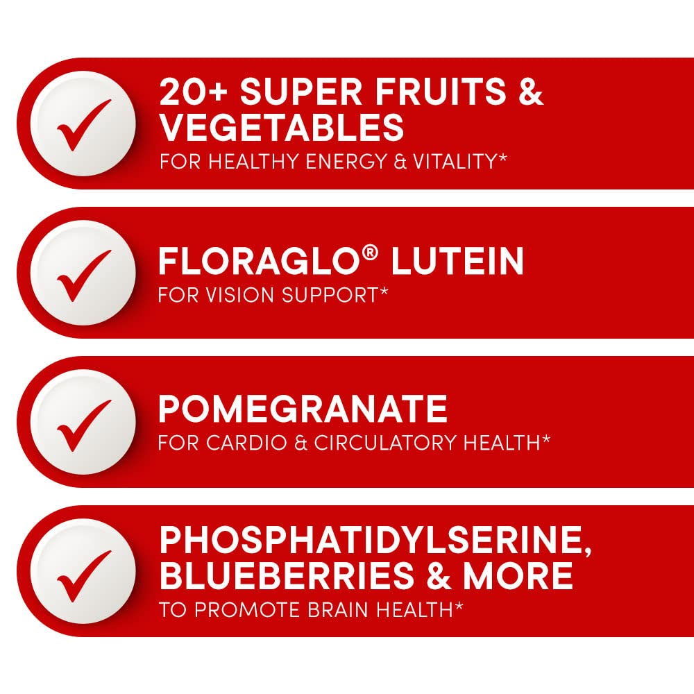 - NUTRIENT-DENSE SUPERFOOD: This delicious berry-flavored drink mix packs in over 25 different fruits, berries, and vegetables - along with other important nutritional co-factors - to deliver the antioxidant equivalent of 5 daily servings of fruits & vegetables to help fill in the gaps in your diet!