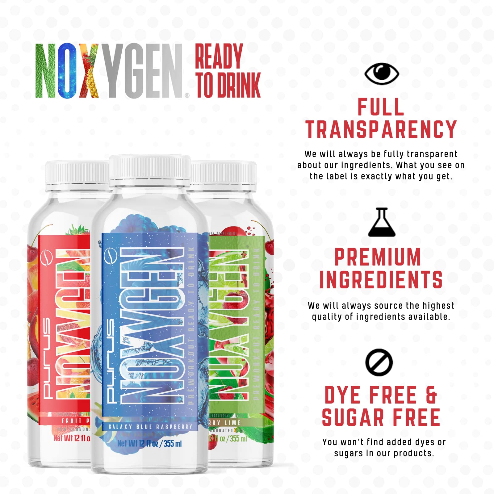 Purus Labs NOXygen Ready To Drink (RTD) Pre-Workout | Pump, Energy, & Performance | 0 Sugars | 6g Citrulline | Pack of 12 (Cherry Lime)