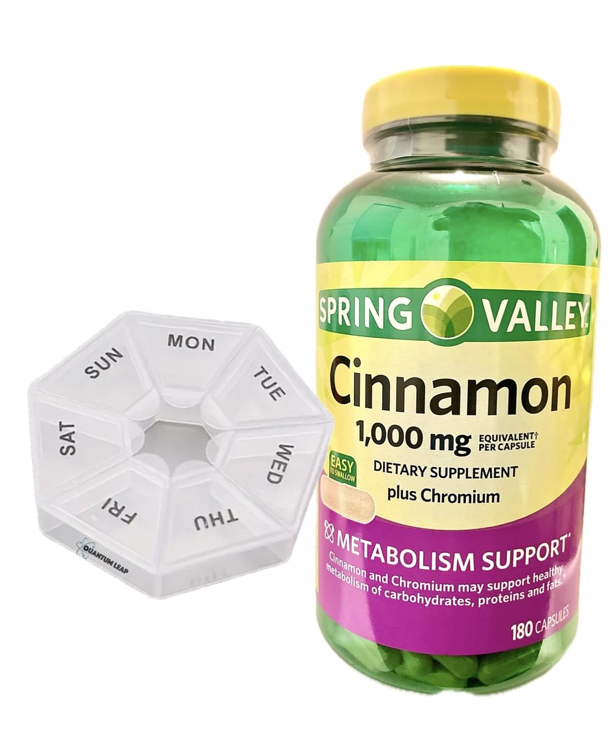 QUANTUM LEAP Weekly Pill Organizer, Includes a Spring Valley Cinnamon 1,000 mg, Dietary Supplement, 180 Capsules.