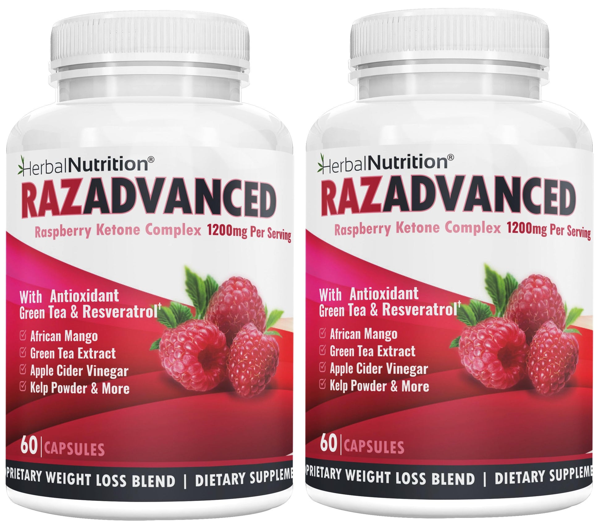 Raspberry Ketones Complex, 120 Capsules, Two Pack, 1200mg Per Serving African Mango, Apple Cider Vinegar, Green Tea, Resveratrol, Acai Fruit, Kelp, and Grapefruit Diet & Weight Management Supplement