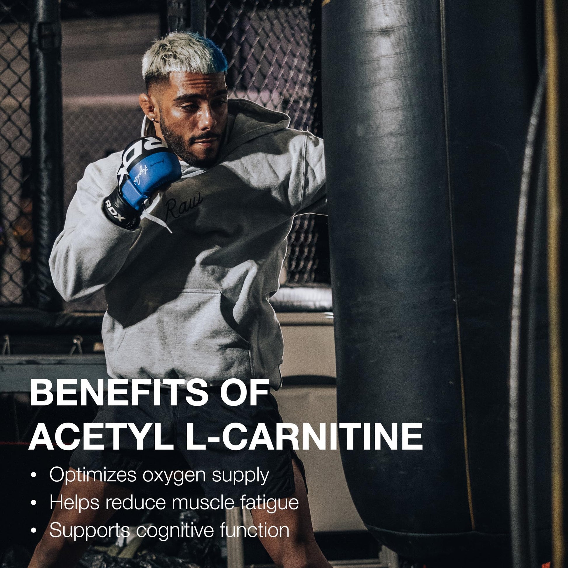- Acetyl L-Carnitine: Fuel your workout with RAW Nutrition’s Acetyl L-Carnitine supplement formulated to help maximize endurance and enhance fat metabolism. It’s formulated to help boost cellular energy, enhance the metabolism of fatty acids and aid in energy production. 60 capsules per container.