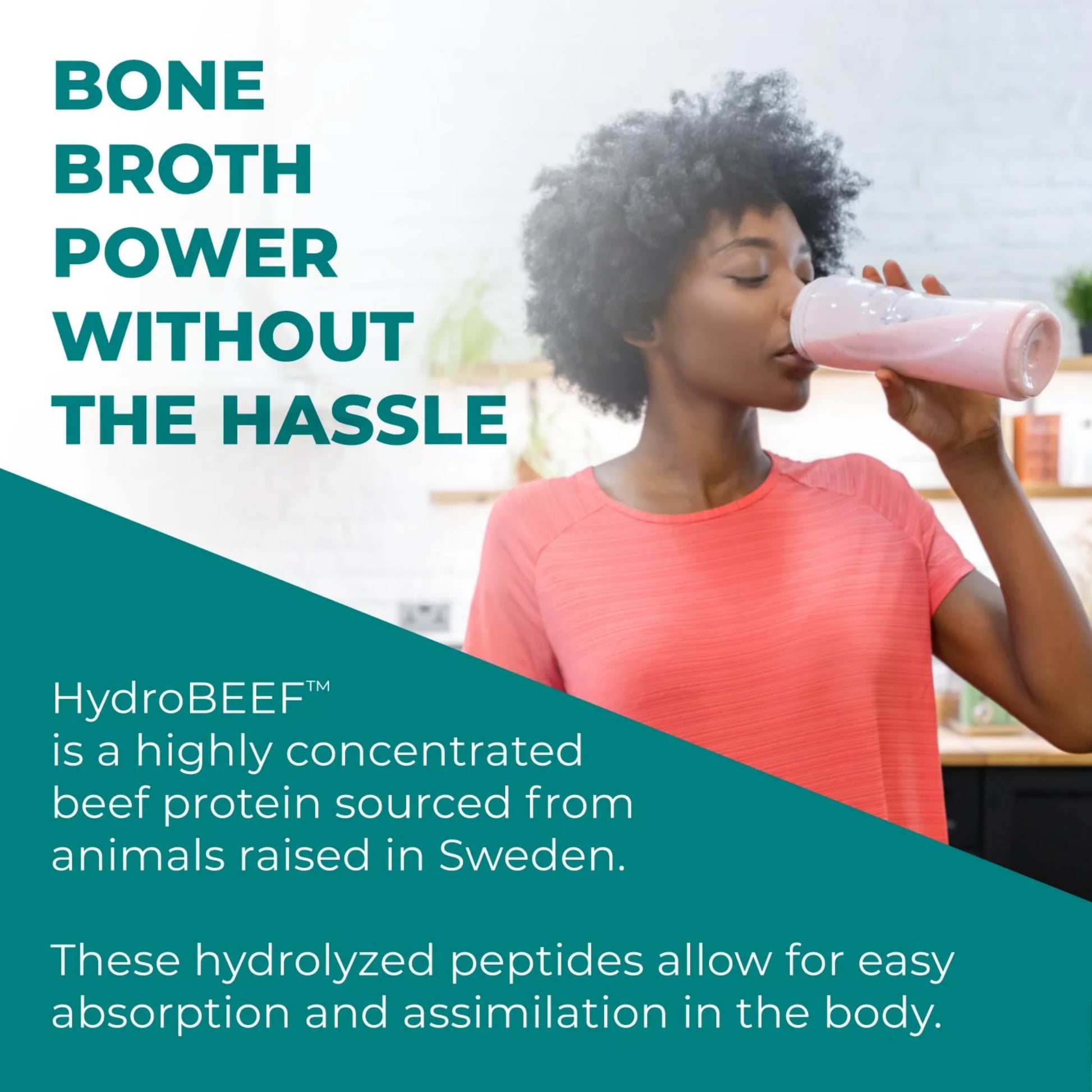 - Bone Broth Benefits: All the benefits of bone broth without the hassle or meaty taste. 97% pure hydrolyzed dairy free protein powder from beef, with naturally occurring BCAAs (branch chain amino acids) and collagen-specific amino acids. From cows raised in Sweden without GMO feed, this protein powder for women and men supports big wins for energy.