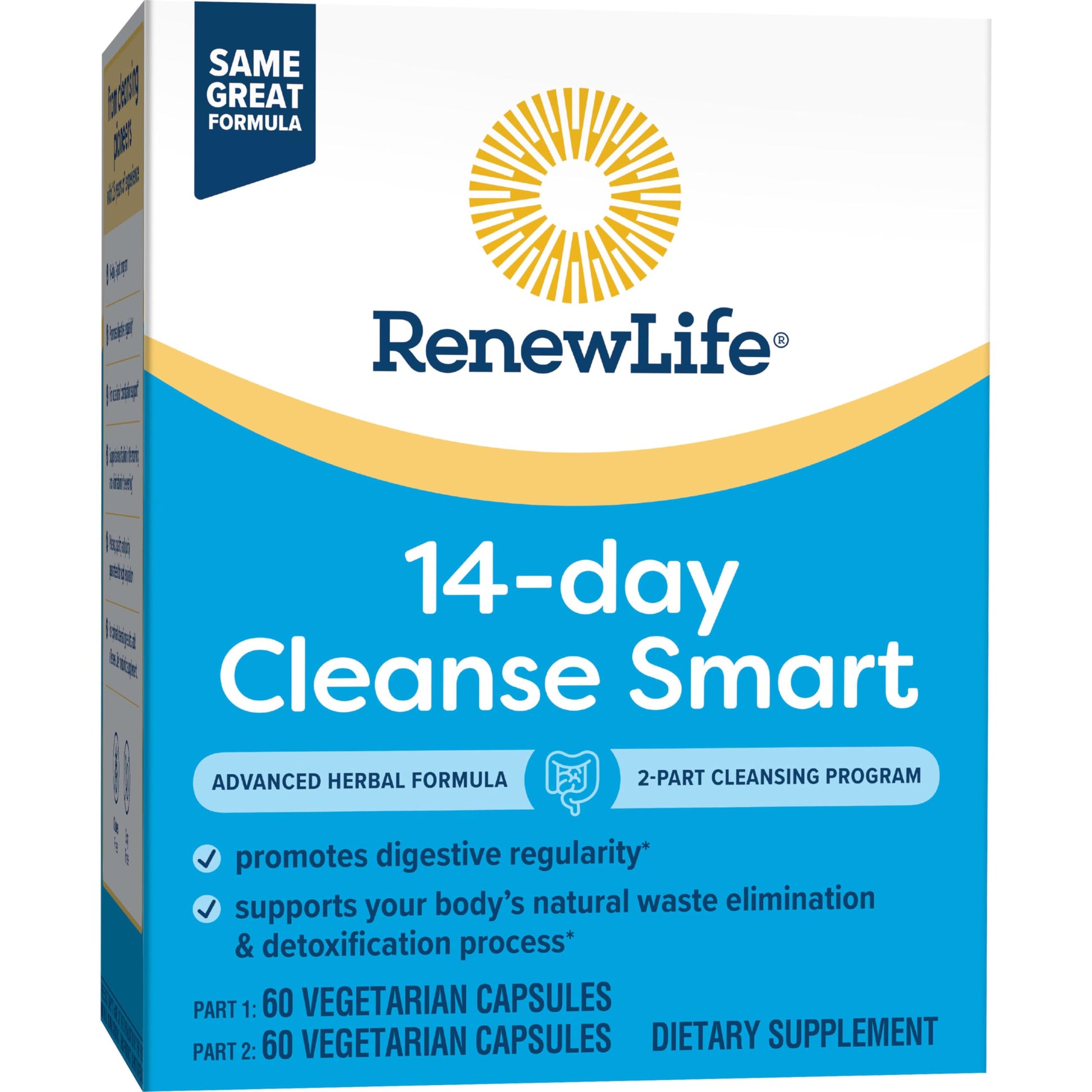 - WHAT TO EXPECT: Take both parts of the Renew Life Cleanse Smart Advanced Herbal Formula as indicated on the packaging for 14 days with plenty of water. This product contains two full cycles. Consult the box for detailed instructions.