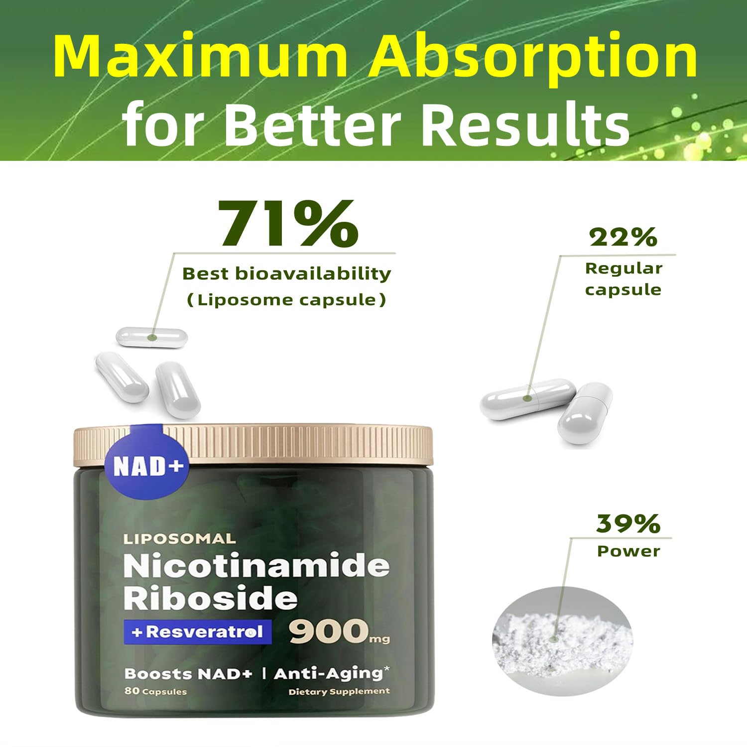 - 【Daily Needs】Each bottle of 80 capsules is a simple addition to your daily health routine. Take two capsules per day for a more significant increase in NAD+ levels.