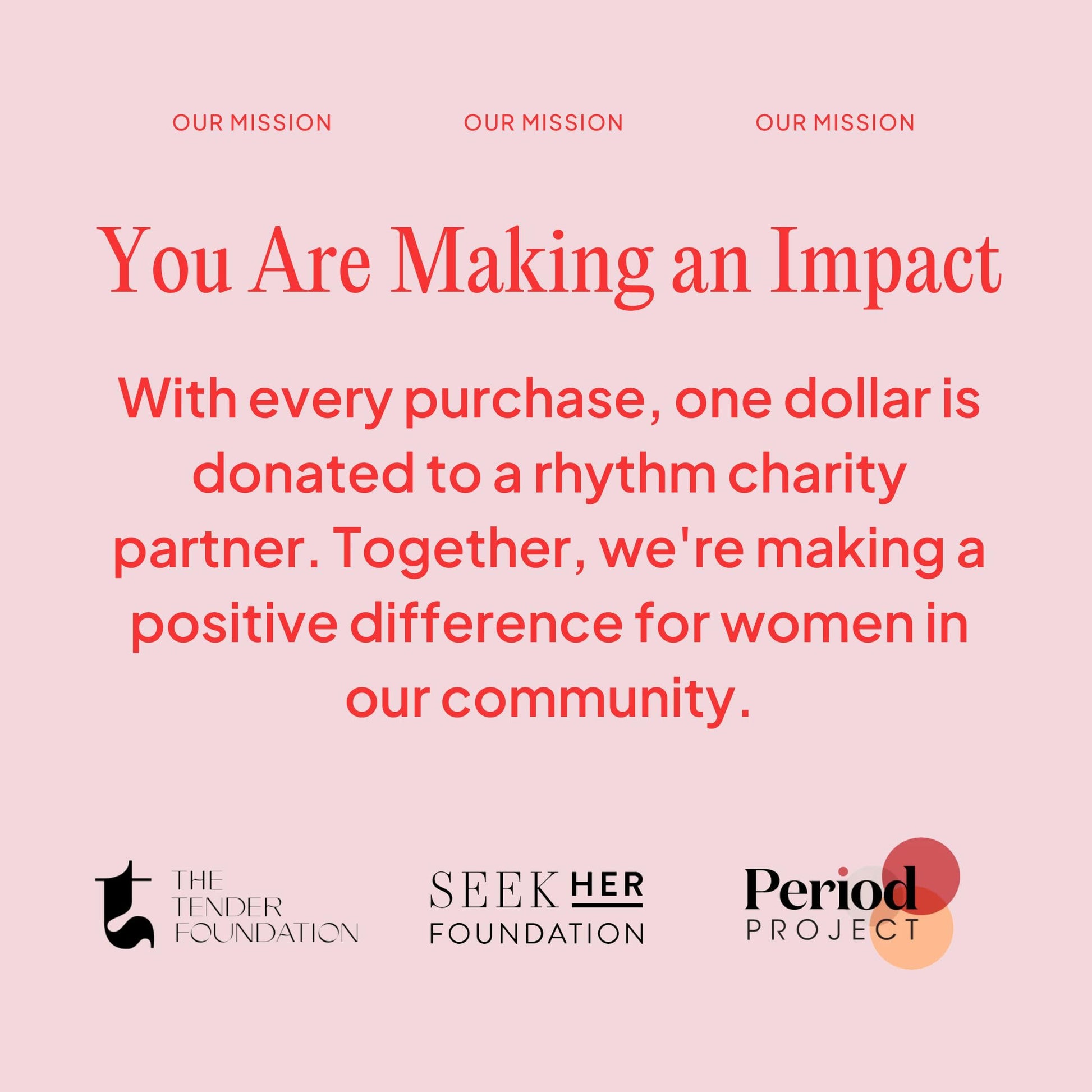 - $1 of every purchase is donated directly to our partner charities supporting women in times of need.