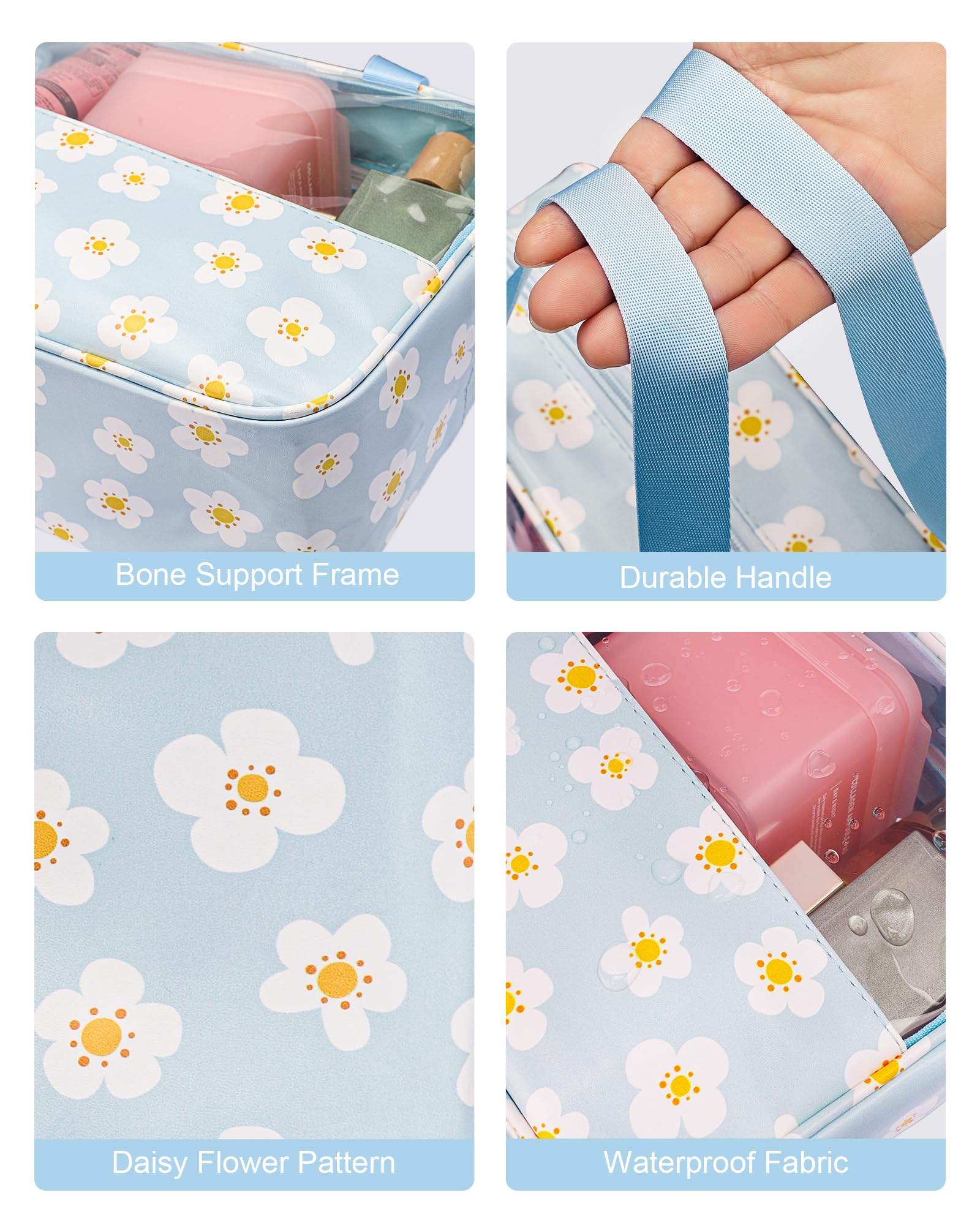 - Unique Daisy Floral Pattern Design: This clear makeup bag features delicate white daisies blooming across an ice-blue background, creating a refreshingly unique aesthetic that captures summer elegance. An ideal choice for fashion-conscious men and women pursuing high quality, suitable for daily use and travel to showcase your personality and taste.