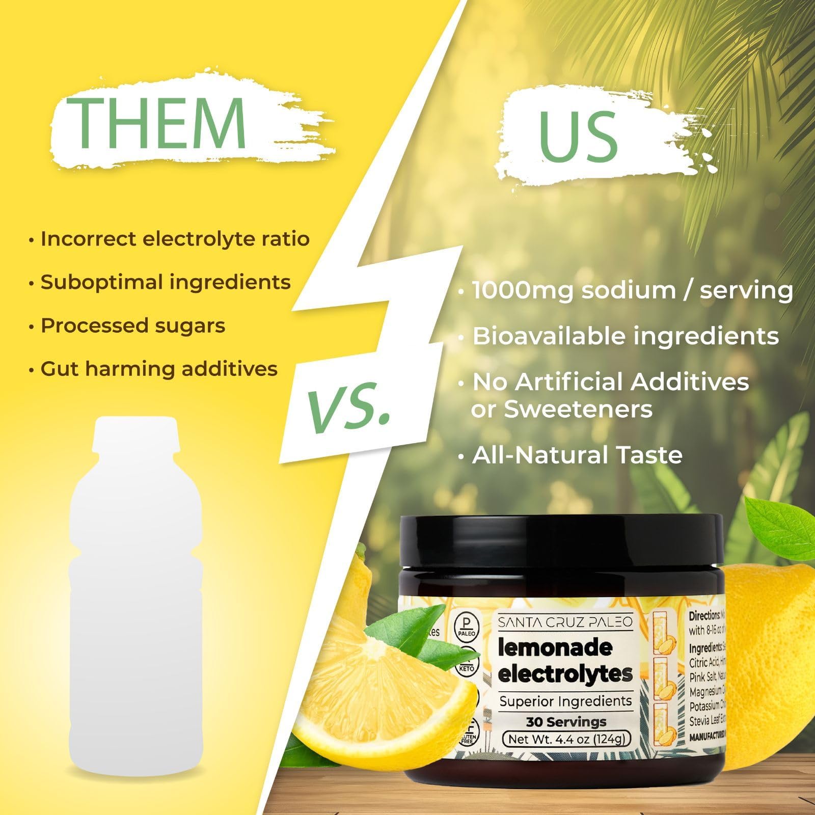 Santa Cruz Paleo Electrolyte Powder Lemonade with Himalayan & Sea Salt, Magnesium, Potassium, Sugar-Free, 30 Servings