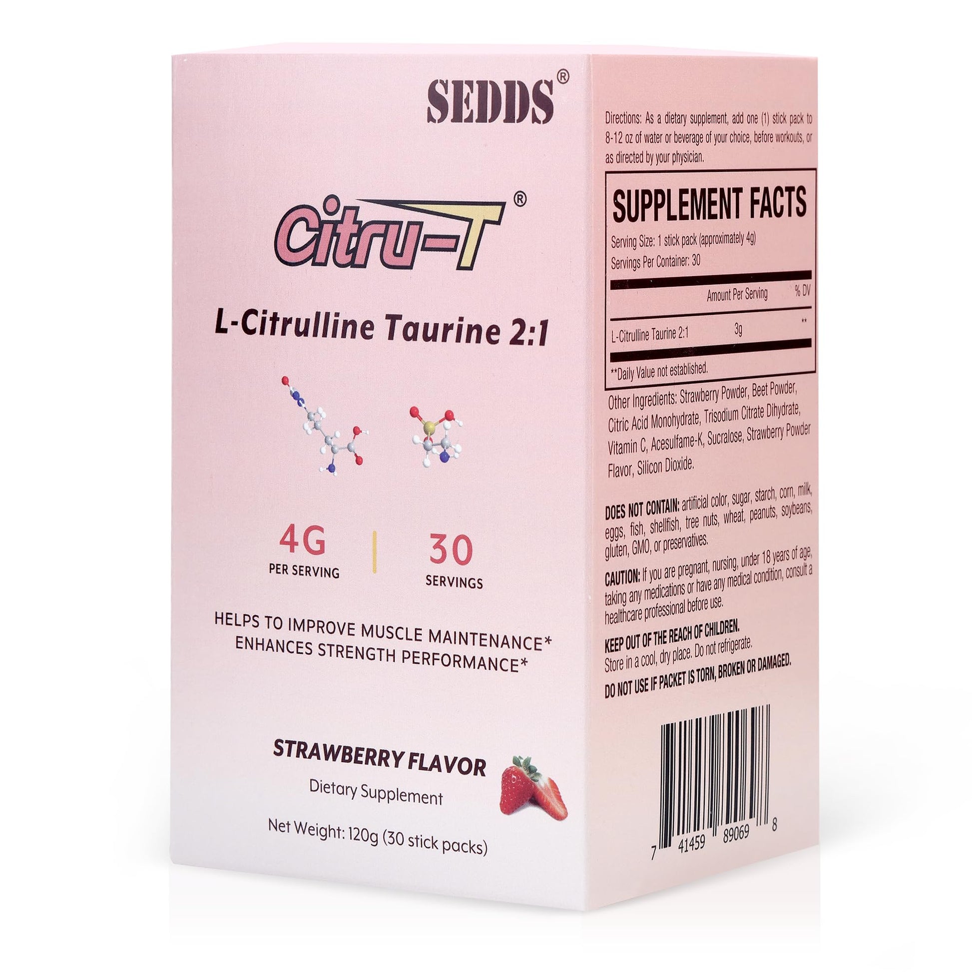 SEDDS L-Citrulline Taurine 2:1, Strawberry-Flavored L Citrulline Powder Citrulline Supplements, Vegan Taurine Powder, Caffeine Free, Gluten Free, 30 Pack