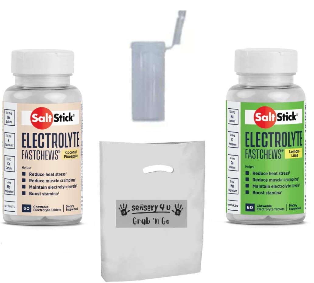 SENSORY4U Saltstick FASTCHEWS Coconut Pineapple & Lemon Lime Variety 2-Pack - 60 Count Bottles with Race Ready Tube - Grab & Go Gift Set