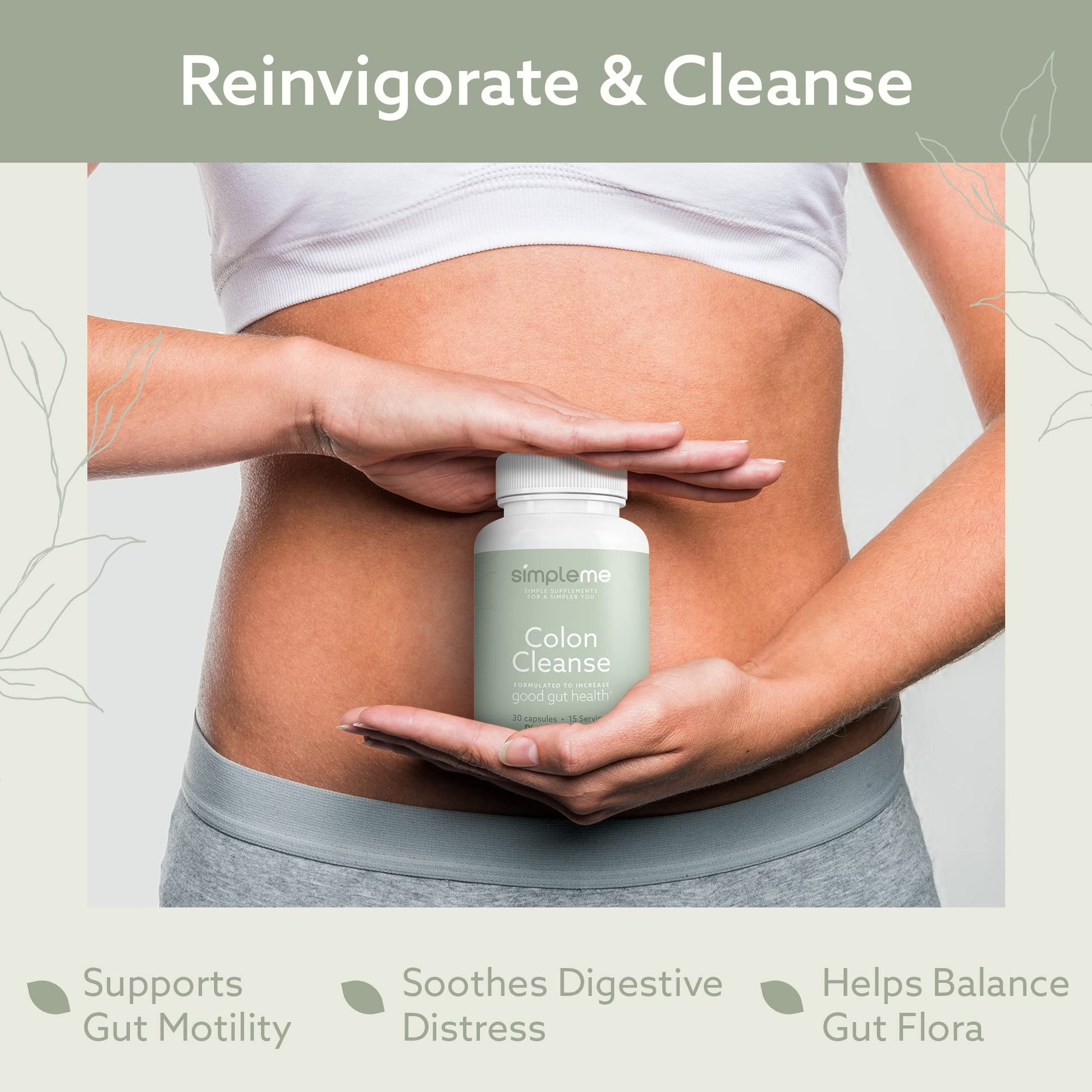 SIMPLEME Colon Cleanse Detox, Natural Constipation Relief for Adults, Fast Bloating Relief Colon Cleanser for Women & Men, 30-Day Gut Support Weight Management, 1 Day Detox Cleanse, 30 Capsules