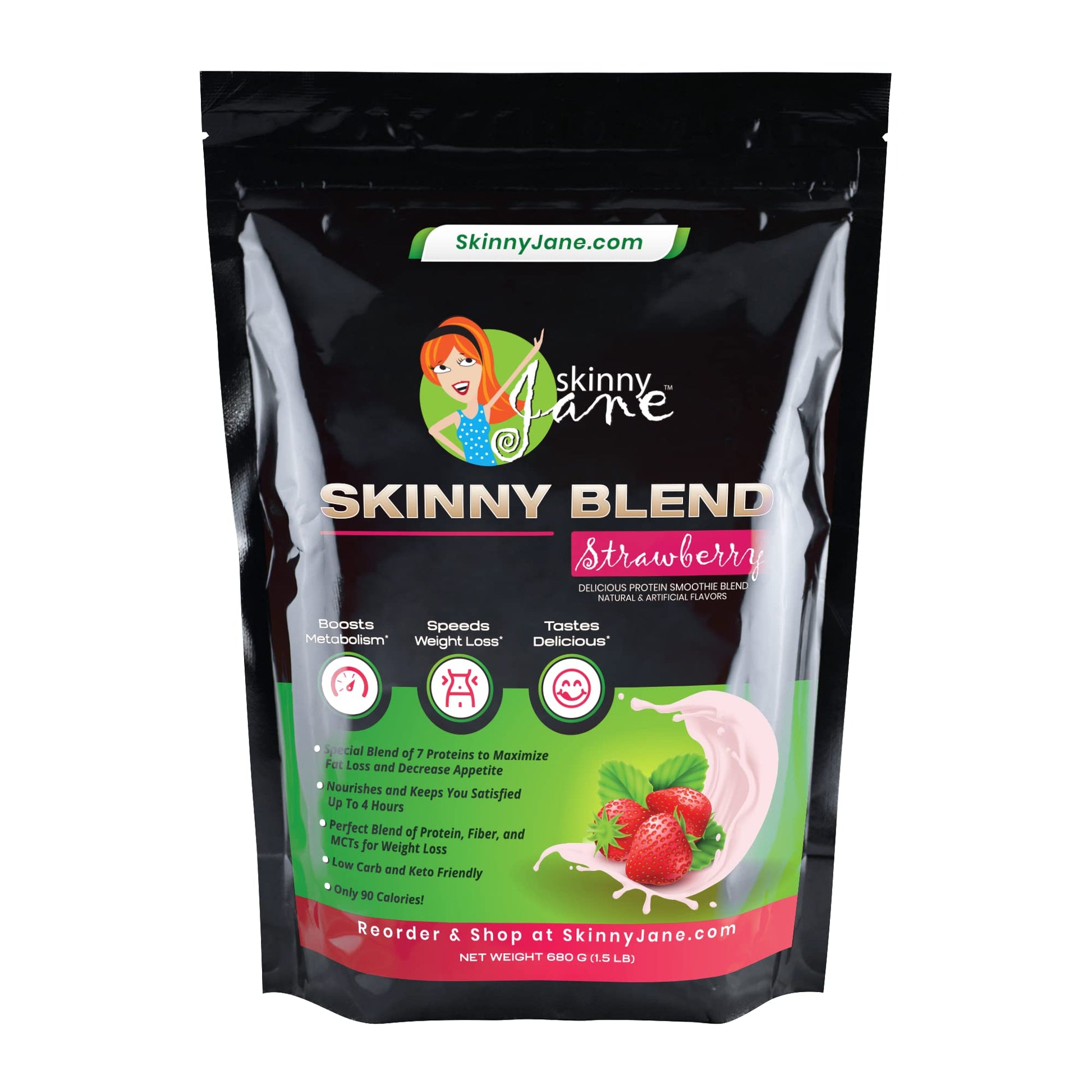 Skinny Blend | Best Tasting High Protein Shake for Women | Low Carb & Keto Friendly Meal Replacement | Satisfy Hunger & Boost Energy | Delicious Smoothie Flavor | 30 Shakes - Strawberry