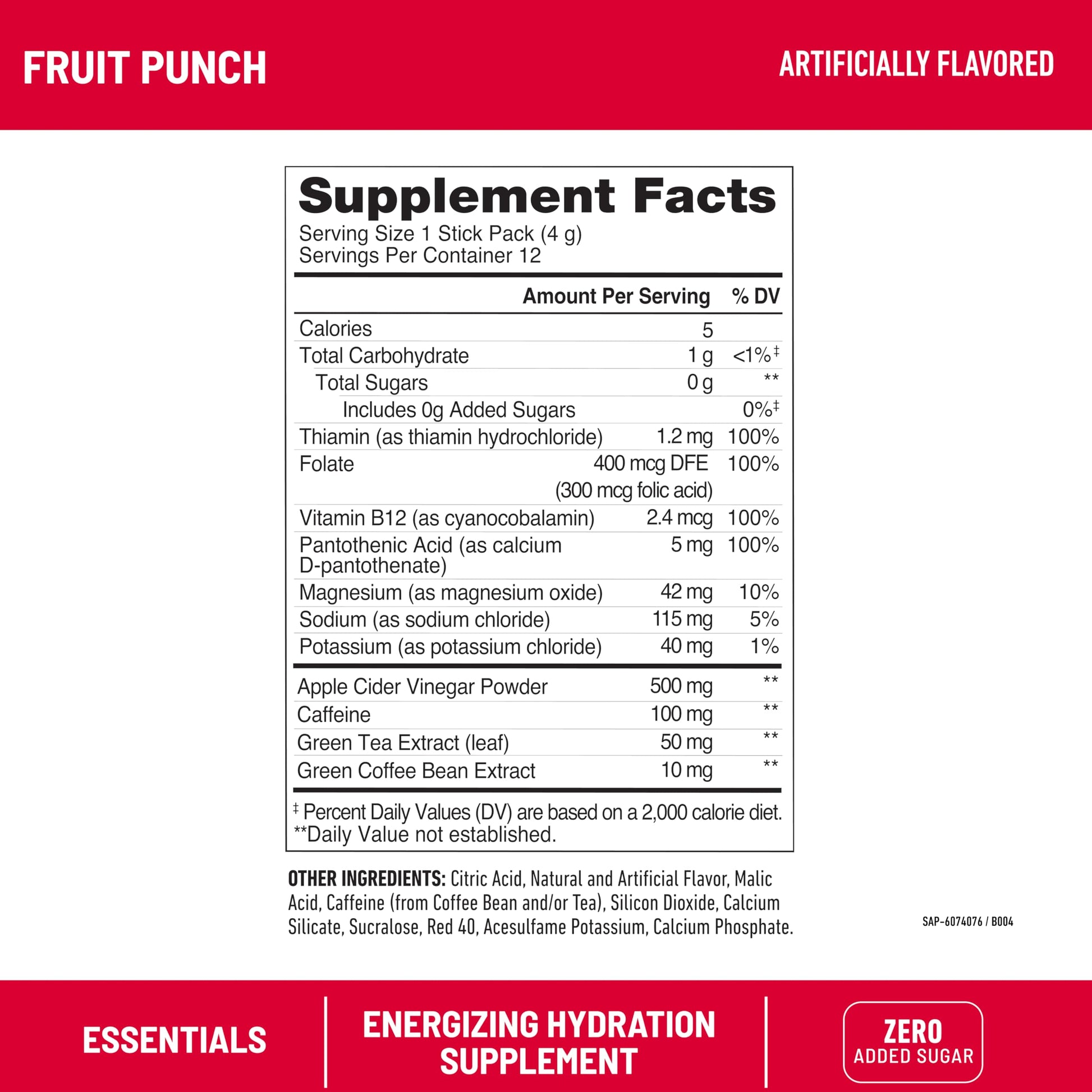 SlimFast Hydration Packets, Intermittent Fasting Electrolytes, Energy Powder Drink Mix, Caffeine from Natural Sources- Fruit Punch (12 Count)