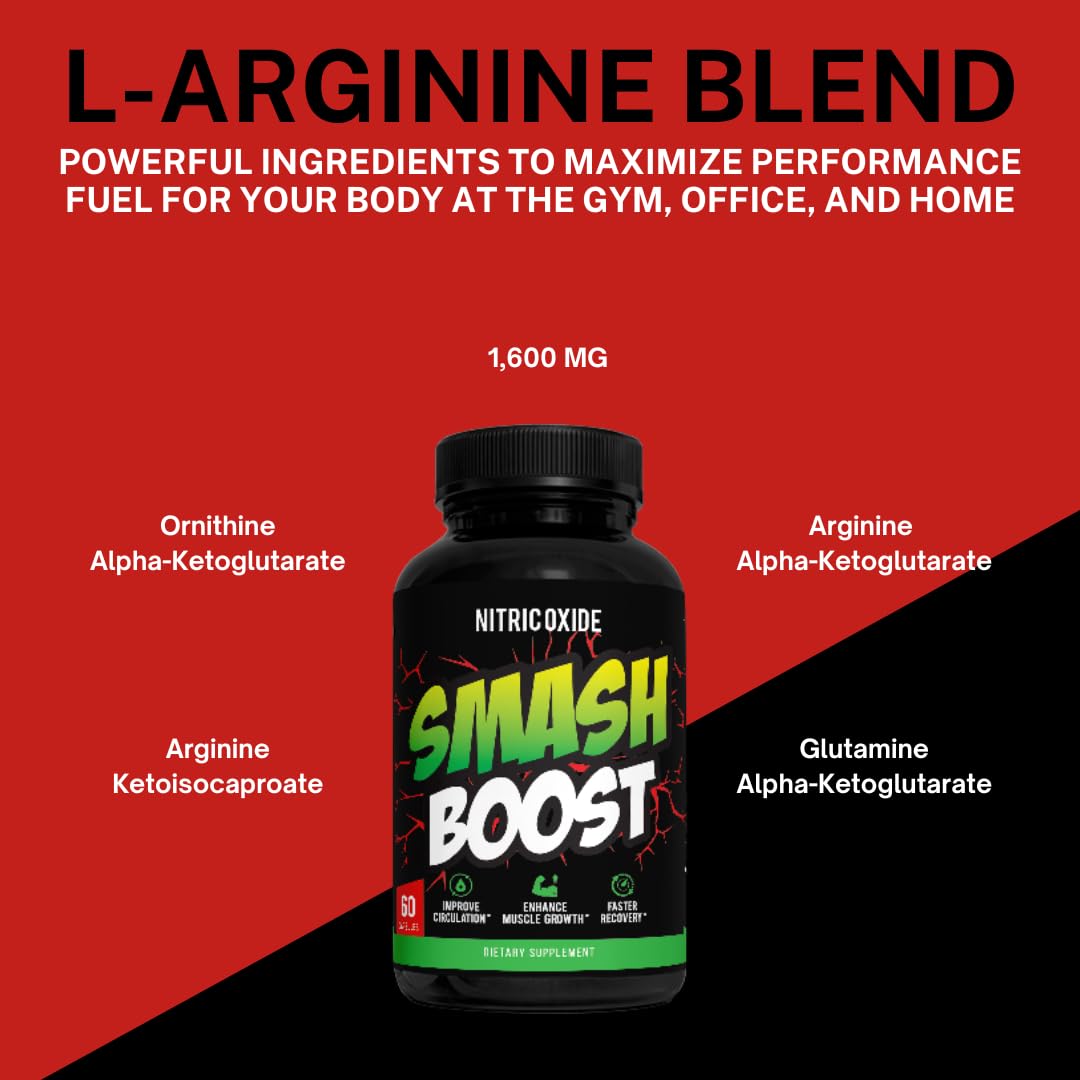 Smash Boost N.O. Nitric Oxide Supplement for Men w/Arginine for Muscle Pumps & Vascularity - Pre Workout Nitric Oxide Booster & Muscle Bulder - 30 Servings **USA Made**