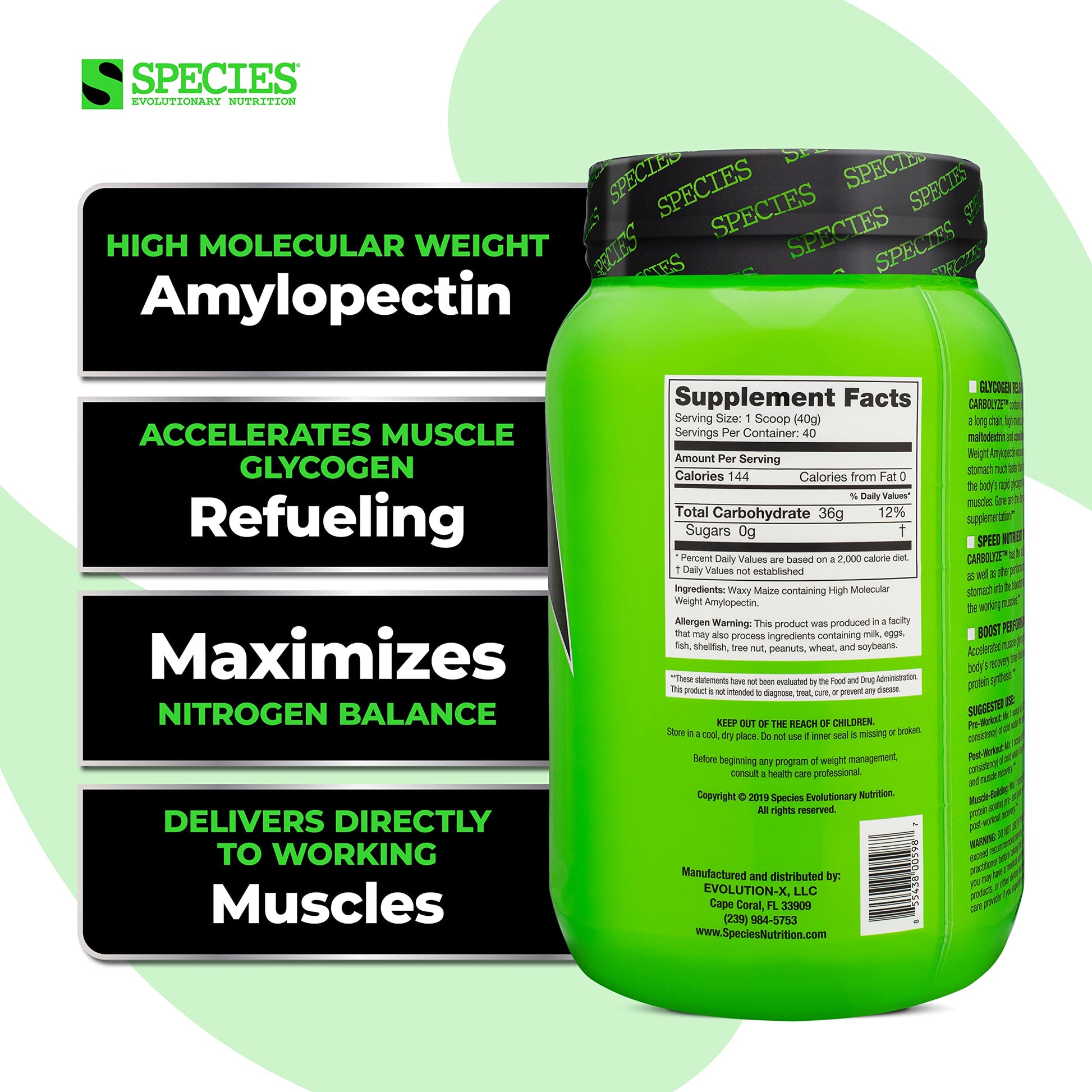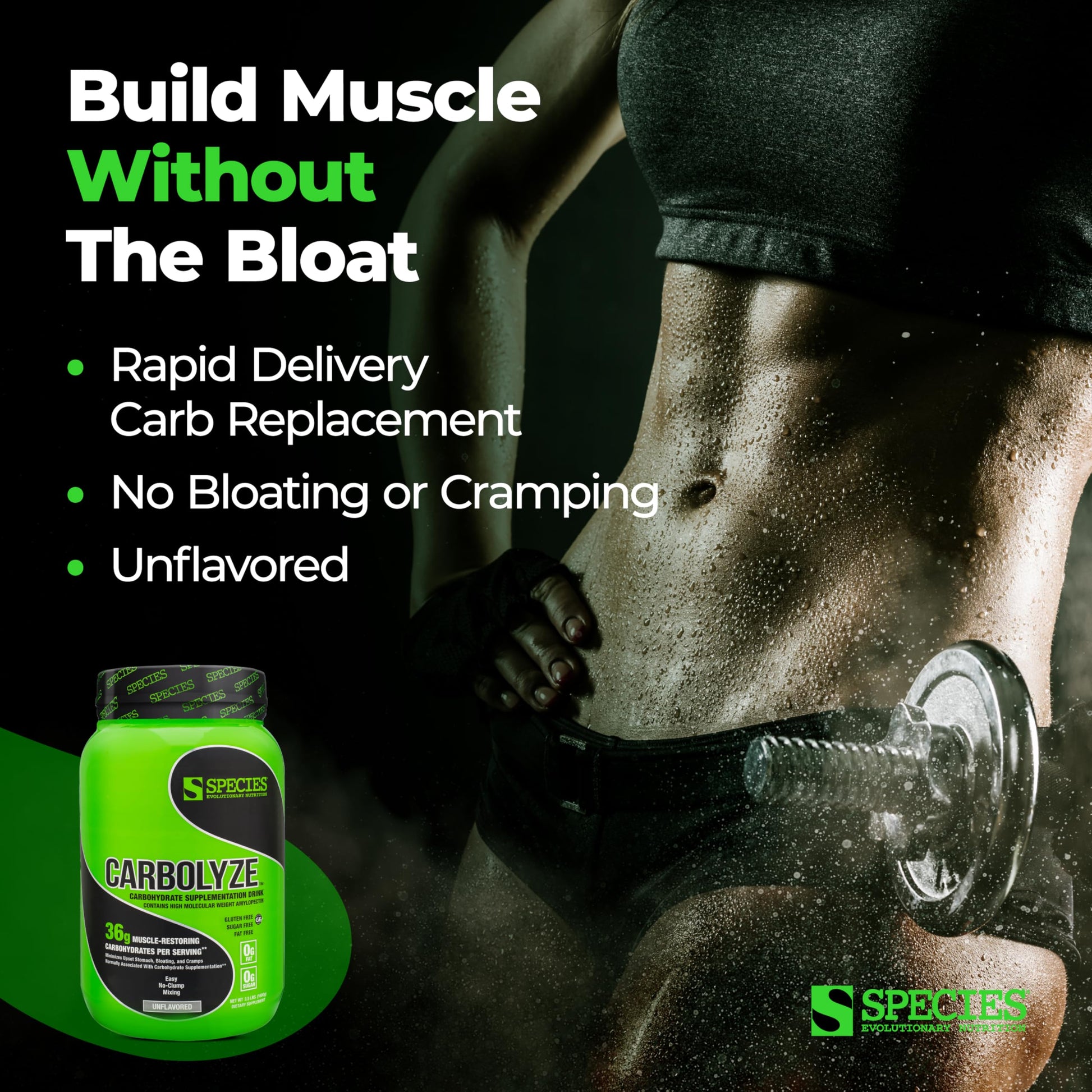 Species Nutrition Carbolyze Carbohydrate Powder Supplement, No Bloating or Cramping, High Molecular Weight Micronized Carb Powder Intra & Post Workout. Sugar Free. (Unflavored, 40 Servings)