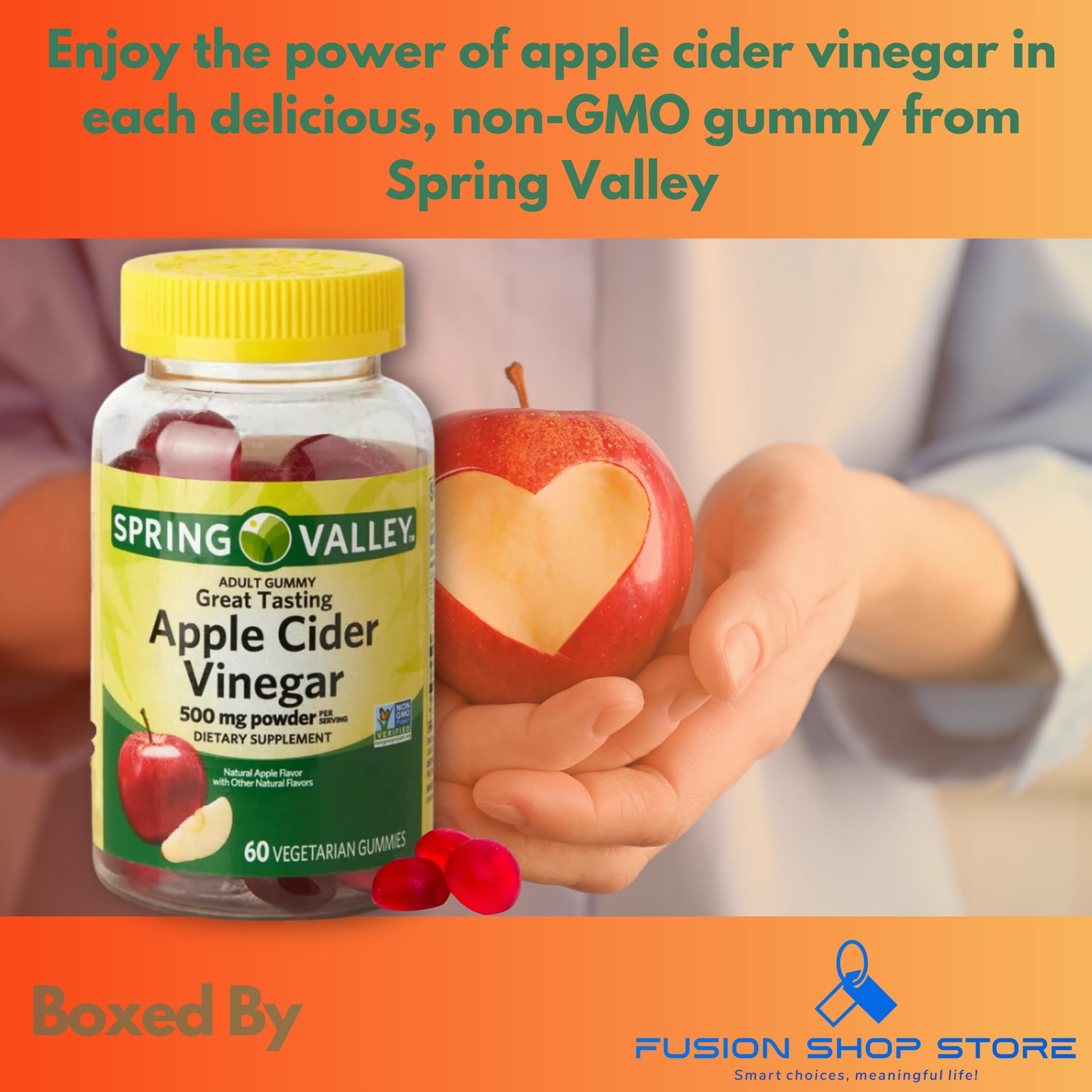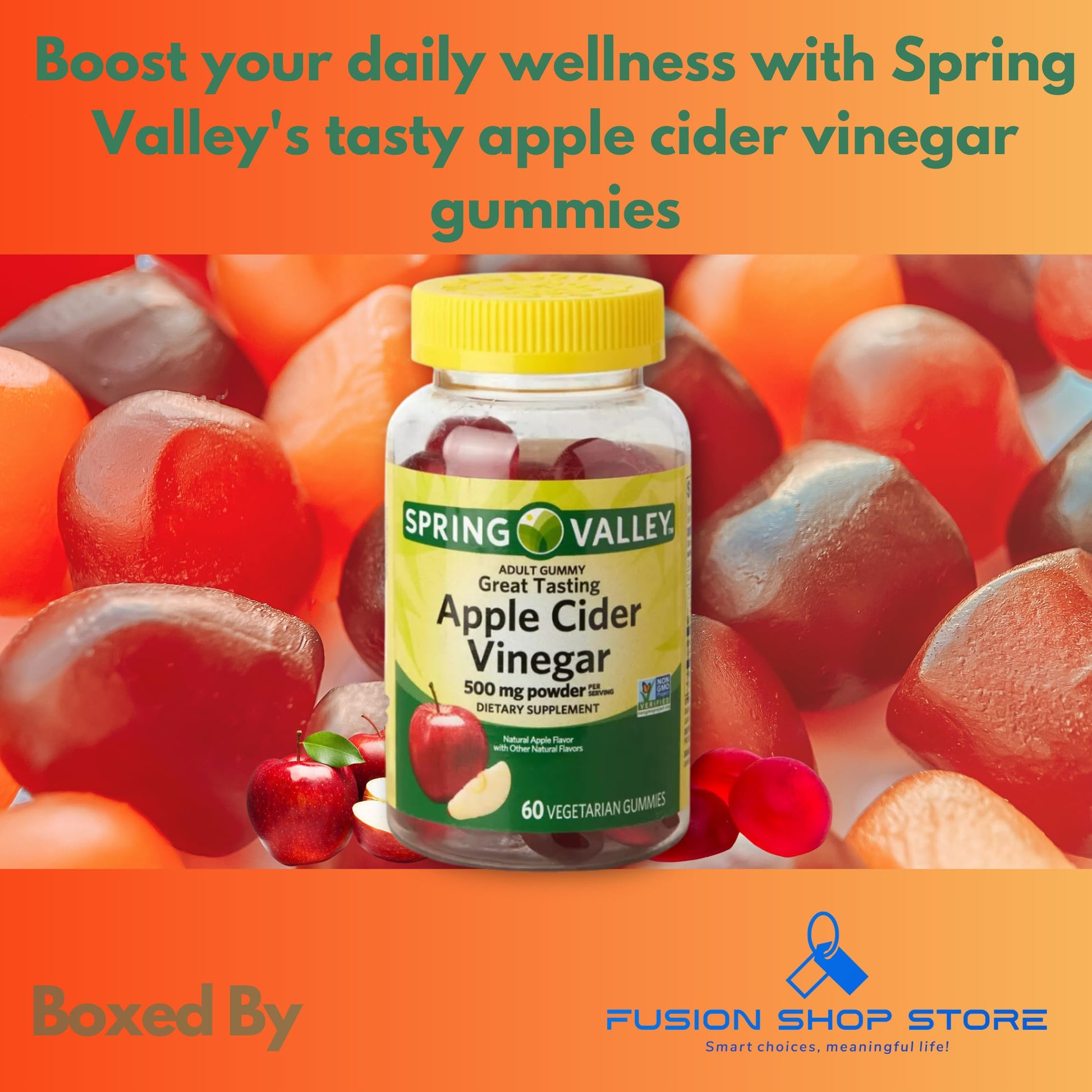 Spring Valley Apple Cider Vinegar Gummies- 500 mg 60 Ct (Pack 1), Boxed by Fusion Shop Store