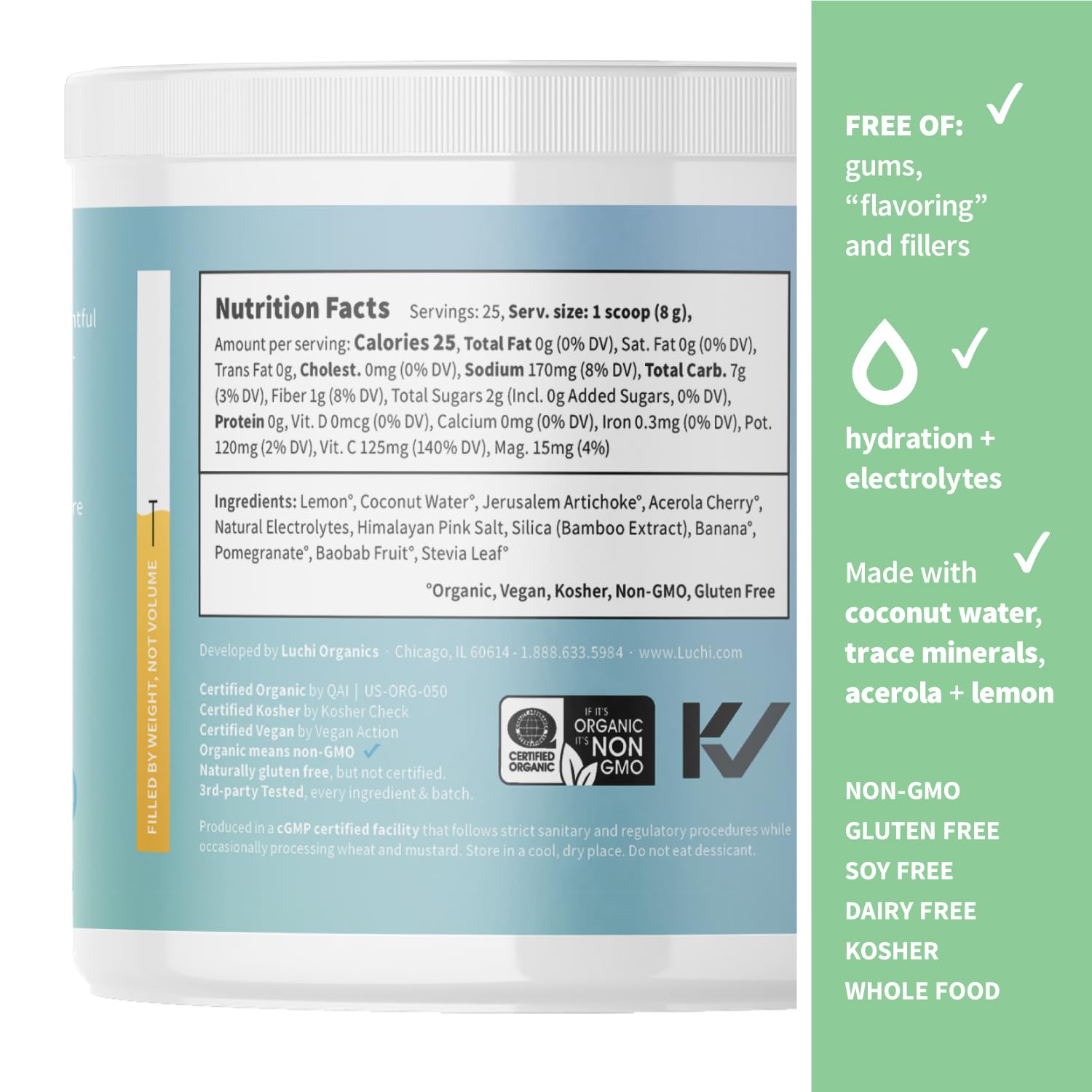 - ORGANIC, PLANT-BASED HYDRATION - Food-based blend of superfoods and adaptogens along with essential electrolytes and trace minerals for a more refreshed and hydrated you. Just mix one scoop with 8oz of cold water, and enjoy!