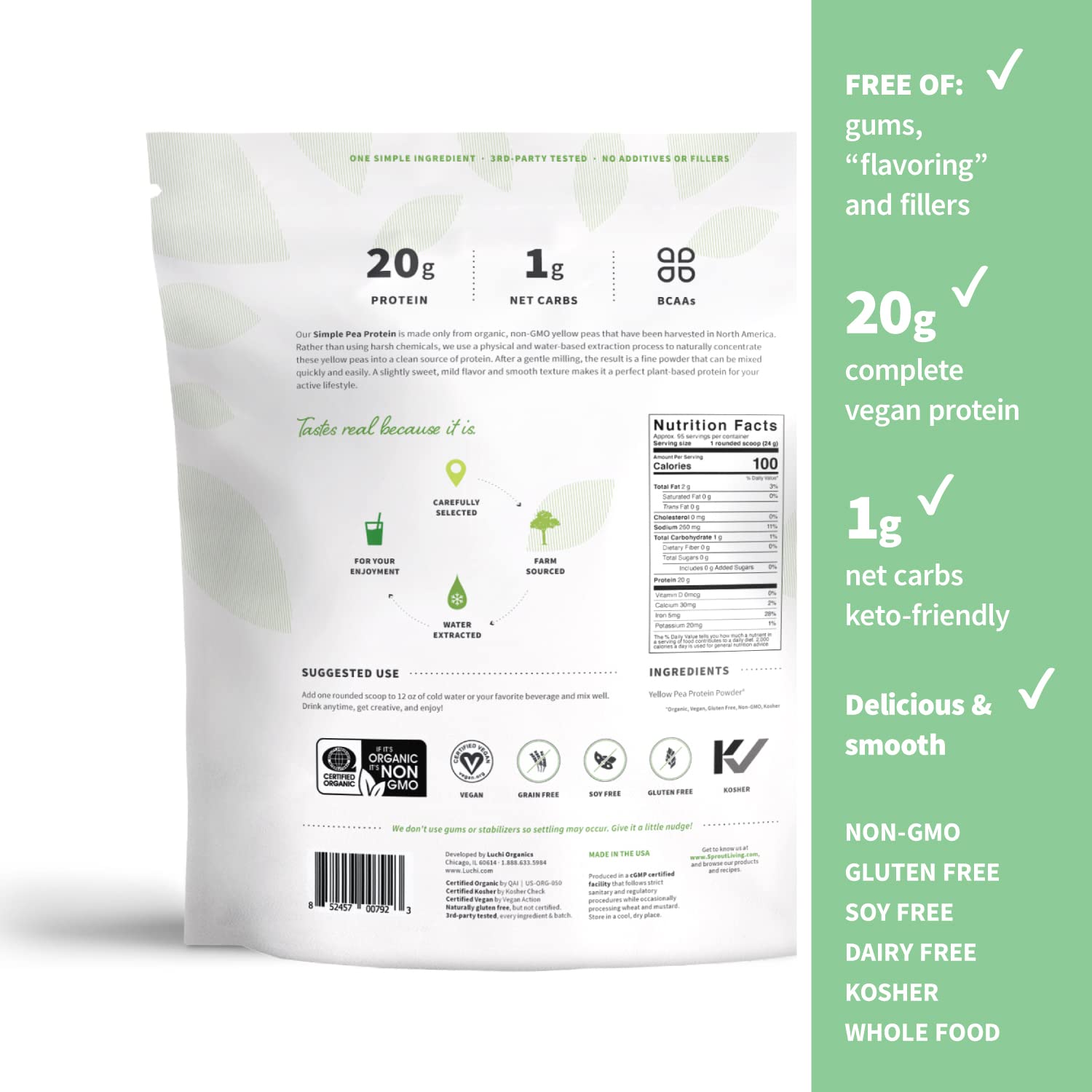 - PURE ORGANIC PLANT PROTEIN POWDER - Plant based, organic pea protein powder from 100% pure, North American yellow peas.