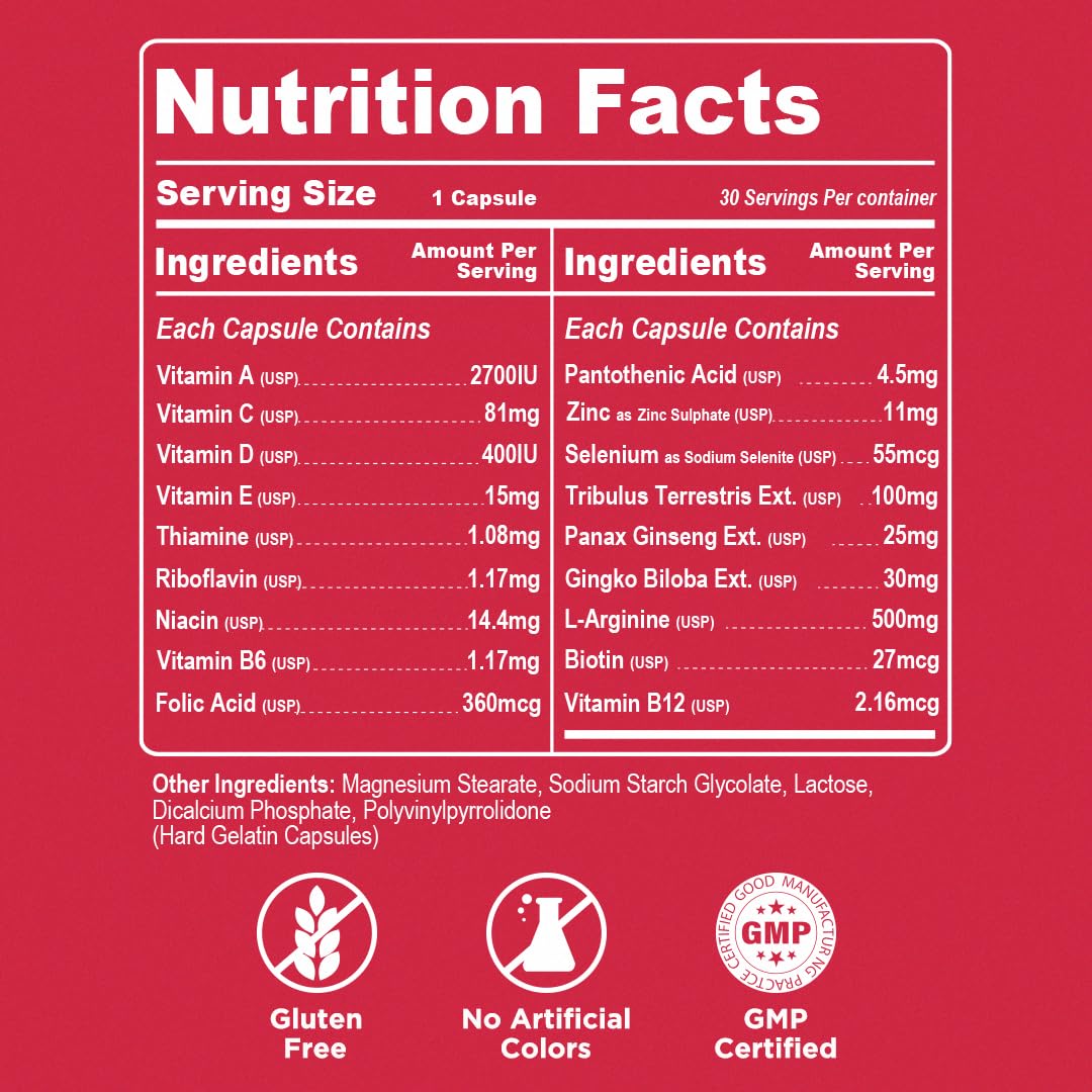 - Convenient & Easy to Incorporate: Designed for simplicity, these capsules fit seamlessly into your busy lifestyle. Use them alongside your regular supplements, such as Tribulus Terrestris for men or L-Arginine supplement, for added convenience.