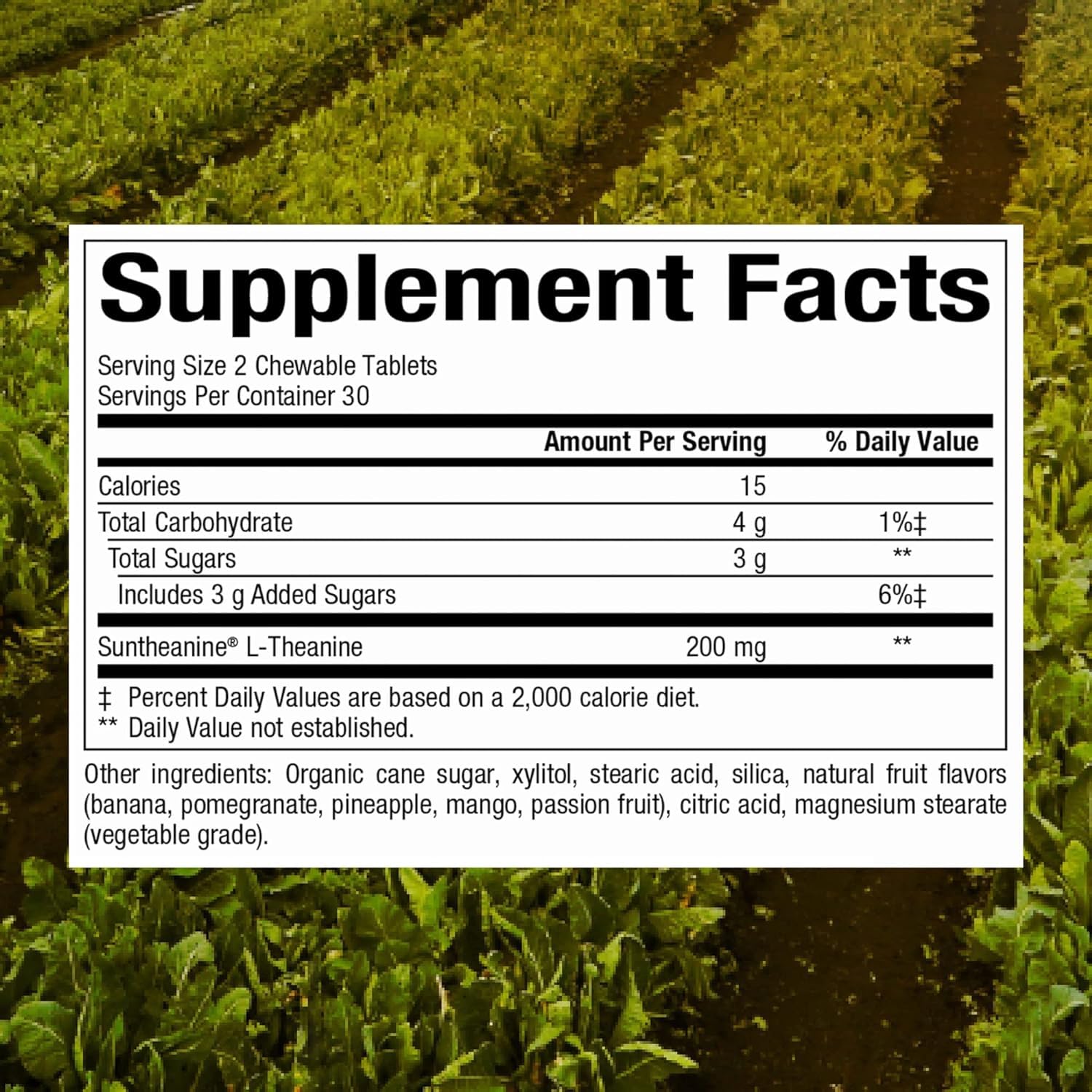 - Non-drowsy peace of mind: Feel calm and stay sharp with help from 100 mg of natural L-theanine in a delicious chewable; Fast-acting support for physical and mental relaxation