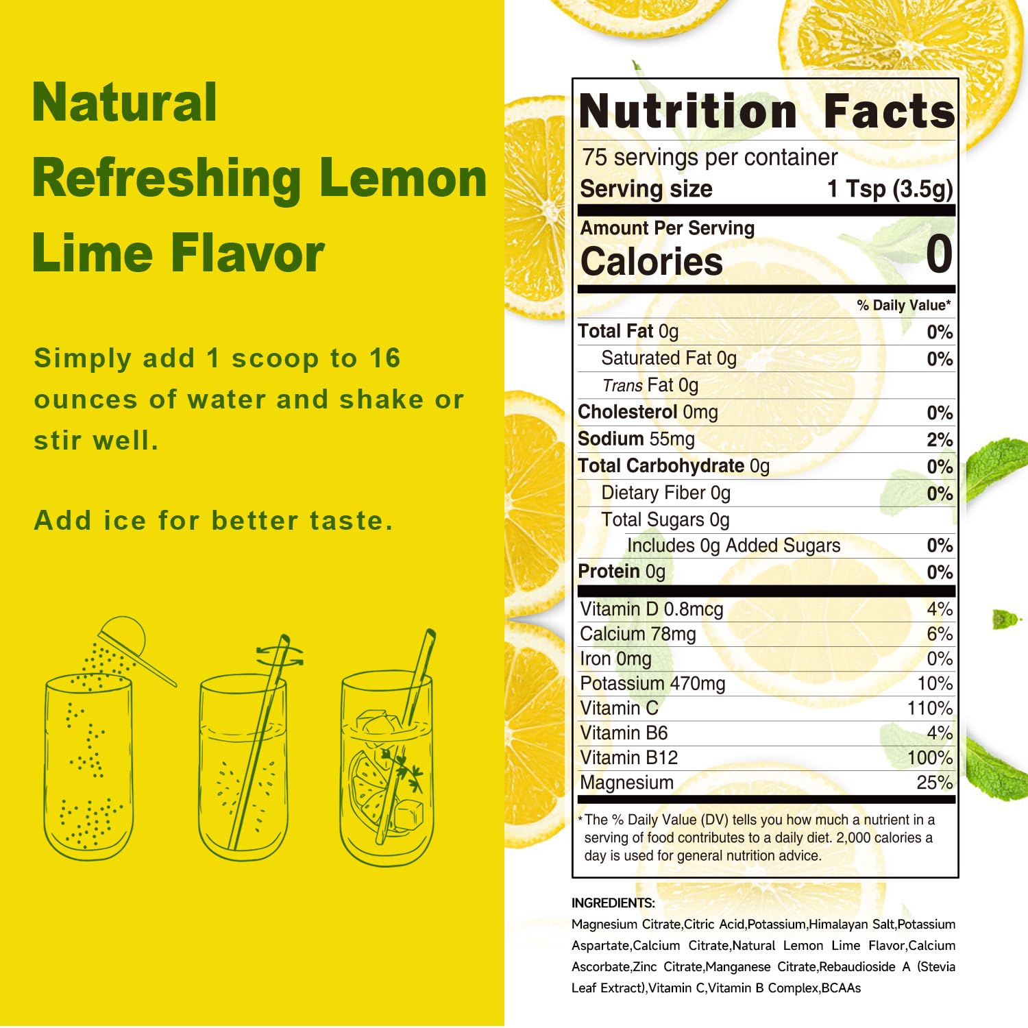- Naturally Delicious: Experience the fresh and delightful taste of Lemon Lime without worrying about added sugar, carbs, or calories. Using real fruit flavor and other natural ingredients, our zero sugar electrolyte drink powder offers a healthier, tastier, and more refreshing option. Enjoy the 75 servings of this refreshing and delicious Lemonade flavor.