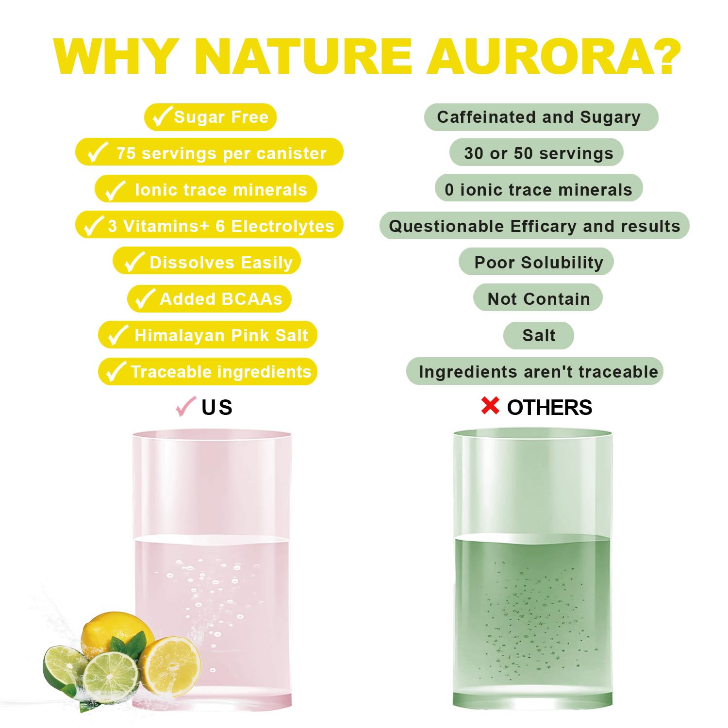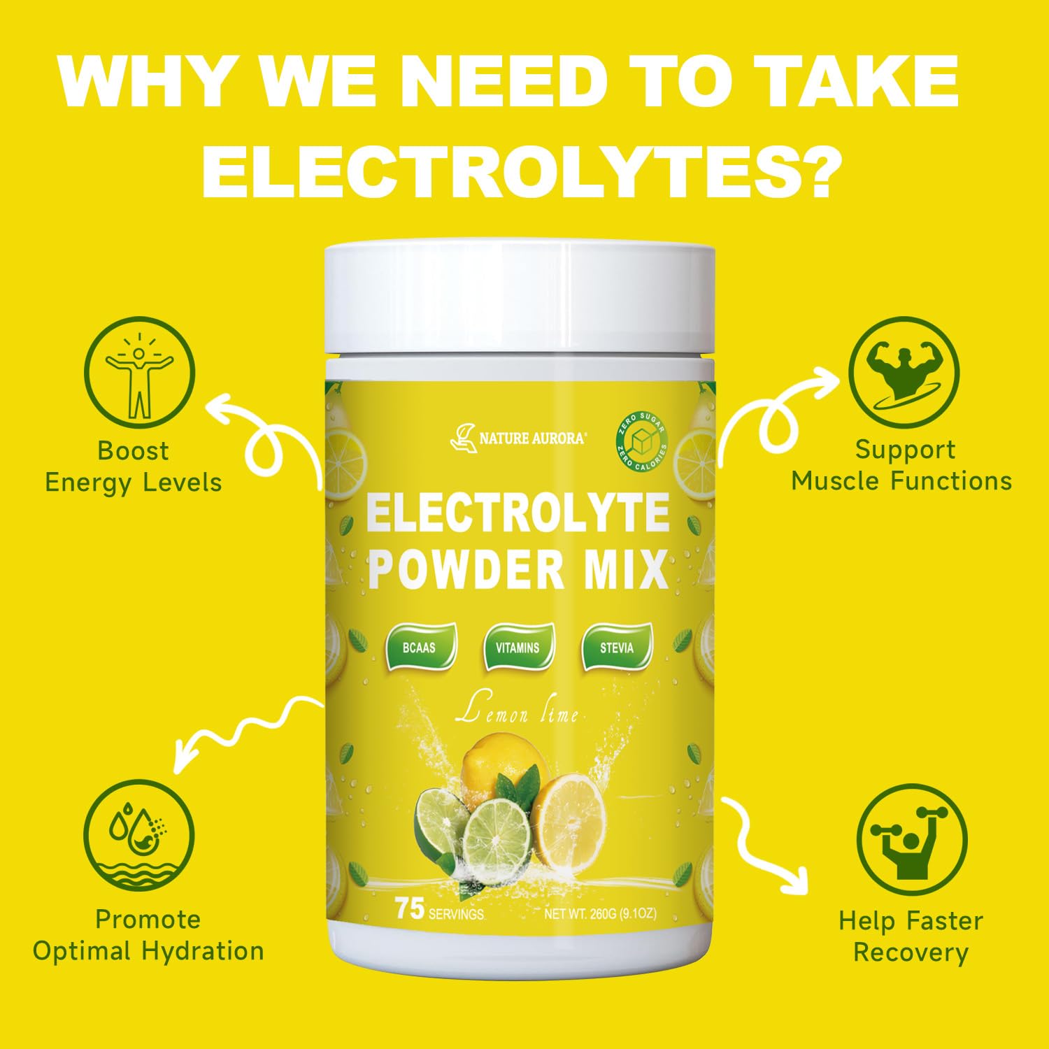 - Enhanced Hydration Formula: Nature Aurora electrolyte drink mix is expertly crafted with 6 essential electrolytes - magnesium, calcium, potassium, chloride, phosphorus, and sodium, as well as natural Stevia sweetener. Fortified with vitamins and BCAAs for optimal hydration and rapid energy recovery, our formula provides enhanced hydration without added sugar, calories, or carbs.