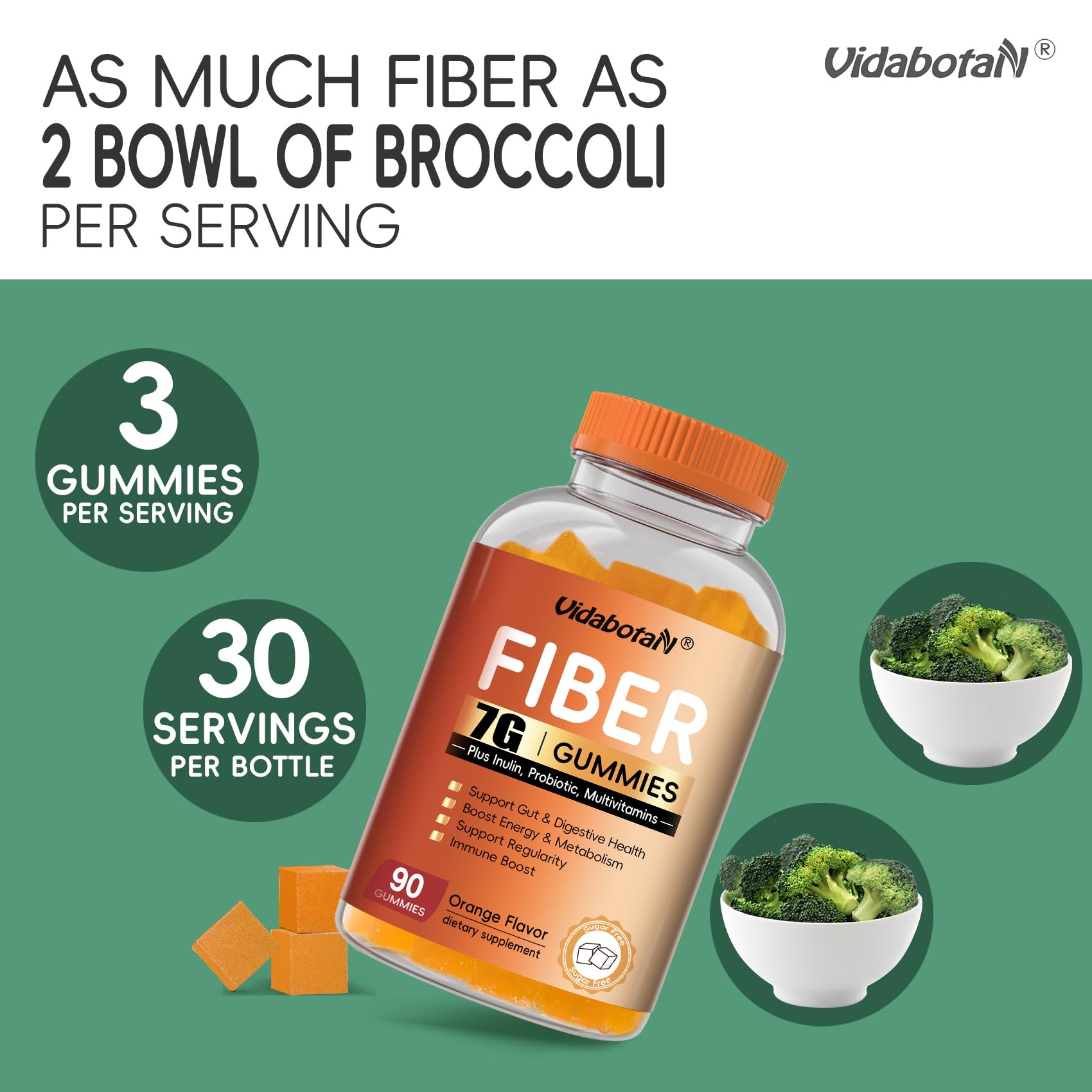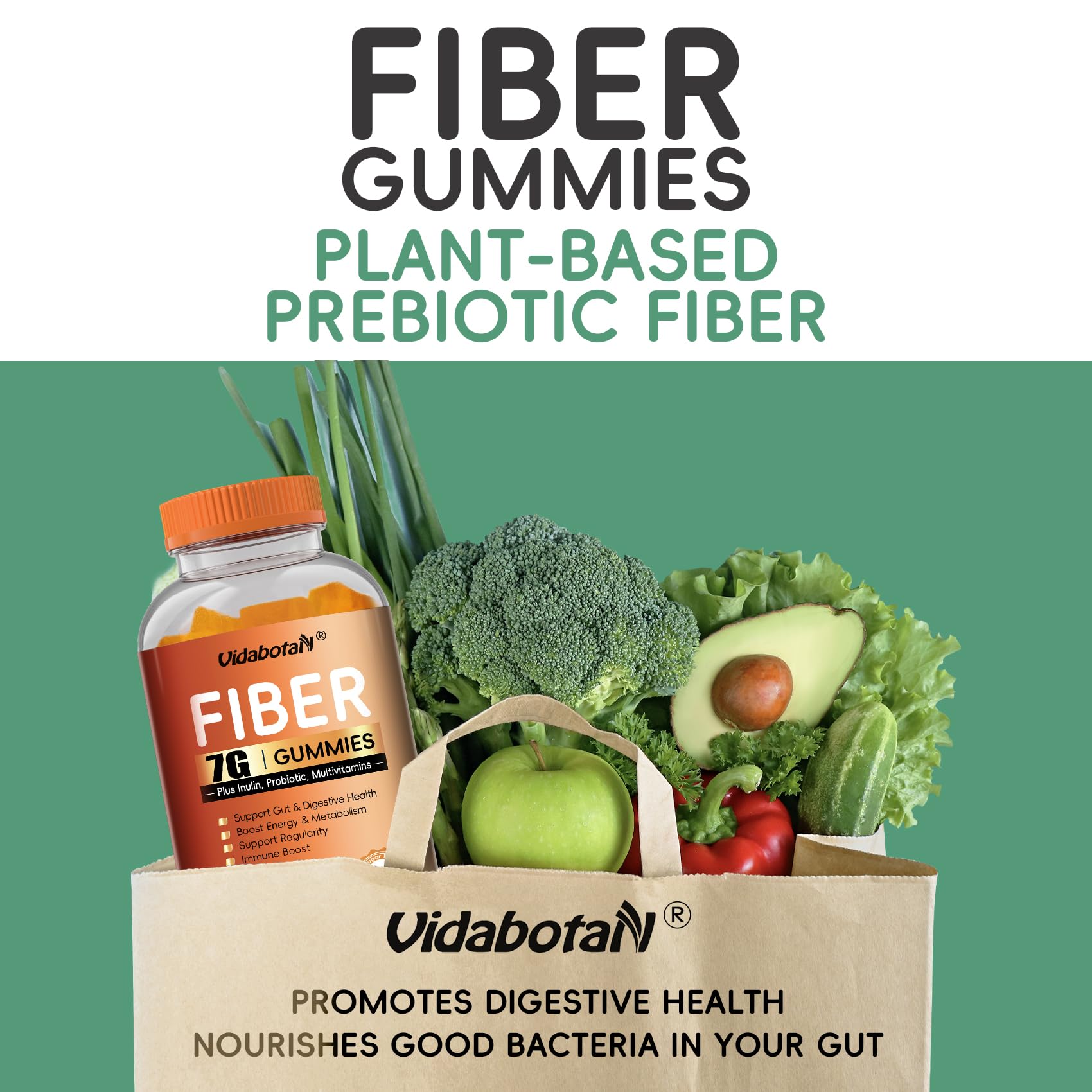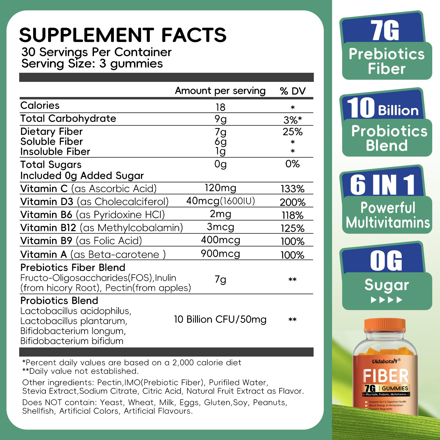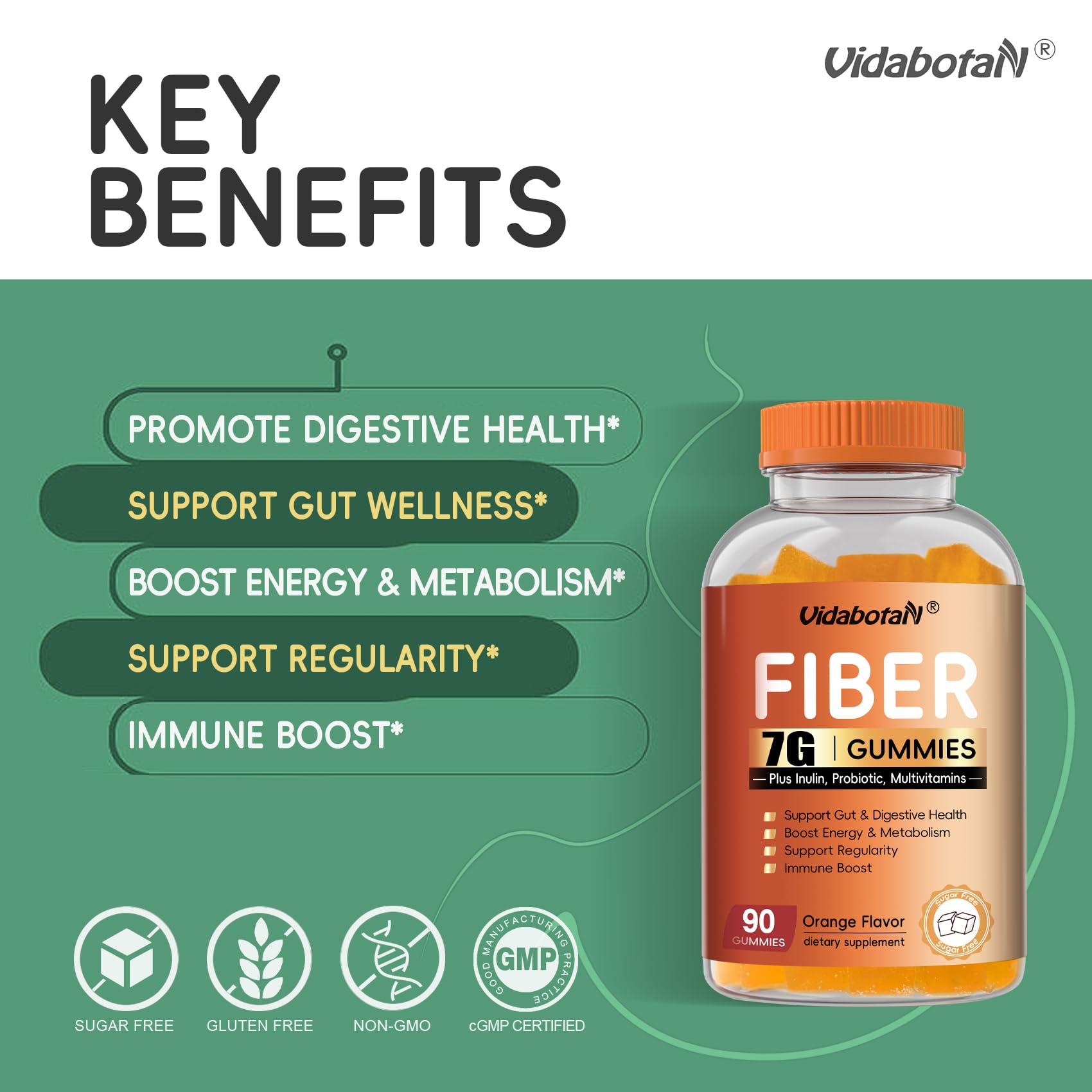 - [Trusted & Premium Quality]: Vidabotan Prebiotic Fiber gummies are vegan, gelatin-free, glutin-free and free from artifical additives, All of our gummies are manufactured, tested and bottled in a GMP certified factory for the superior quality and consistency.