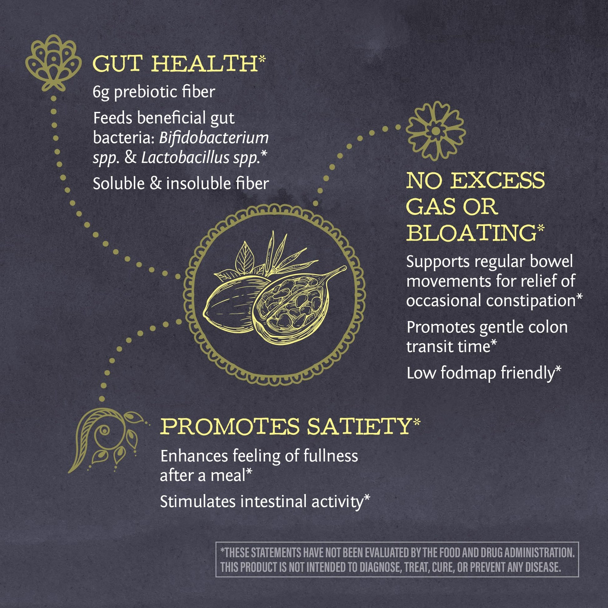 - Gut Health Boost: Unleash the power of prebiotic fiber to feed beneficial gut bacteria, fostering a flourishing gut microbiome, while soluble and insoluble fibers support gentle colon transit time and promote a sense of fullness.