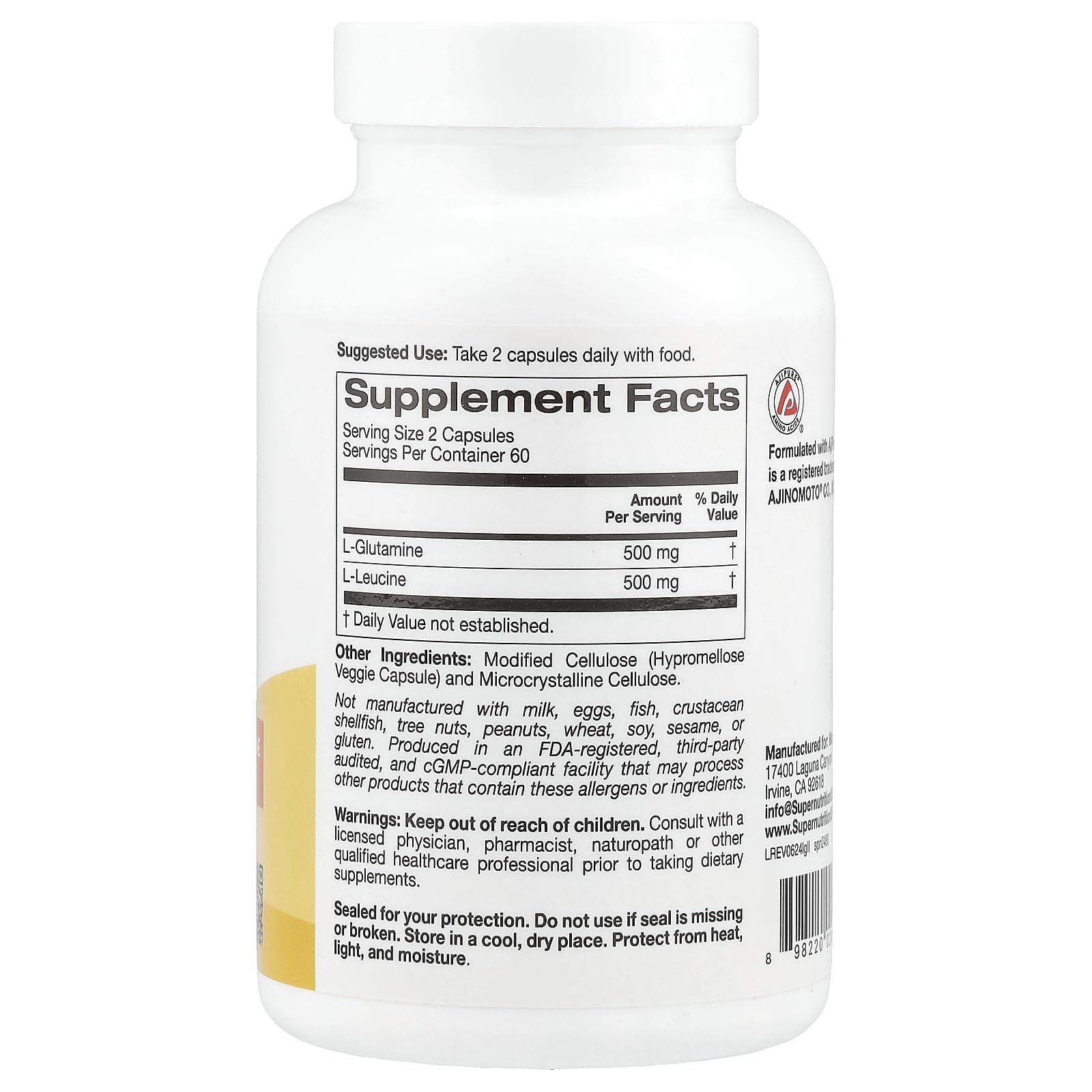 Super Nutrition L-Glutamine + L-Leucine, 120 Veggie Capsules