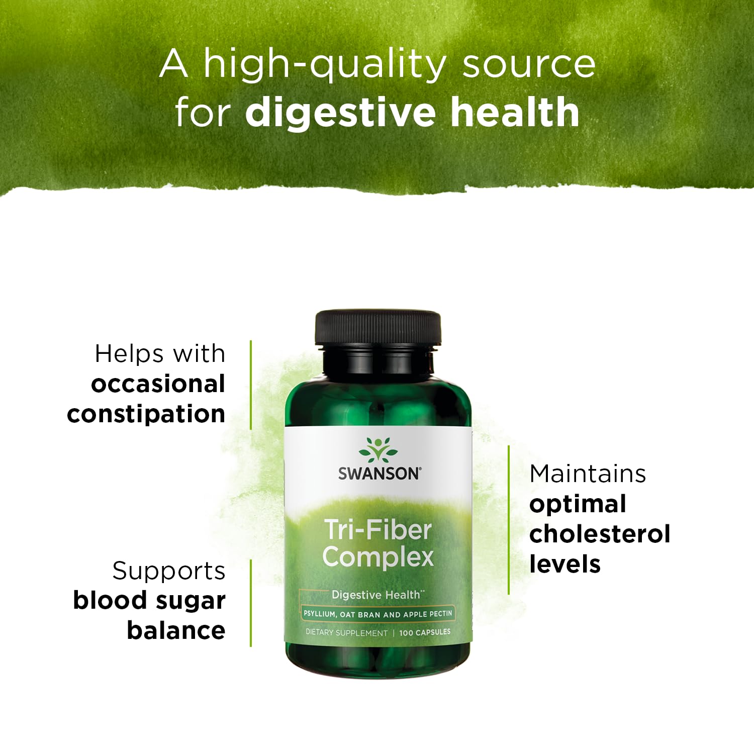 Swanson Tri-Fiber Complex - Digestive Health Supplement Made with Psyllium, Oat Bran, '&' Apple Pectin - (100 Capsules)