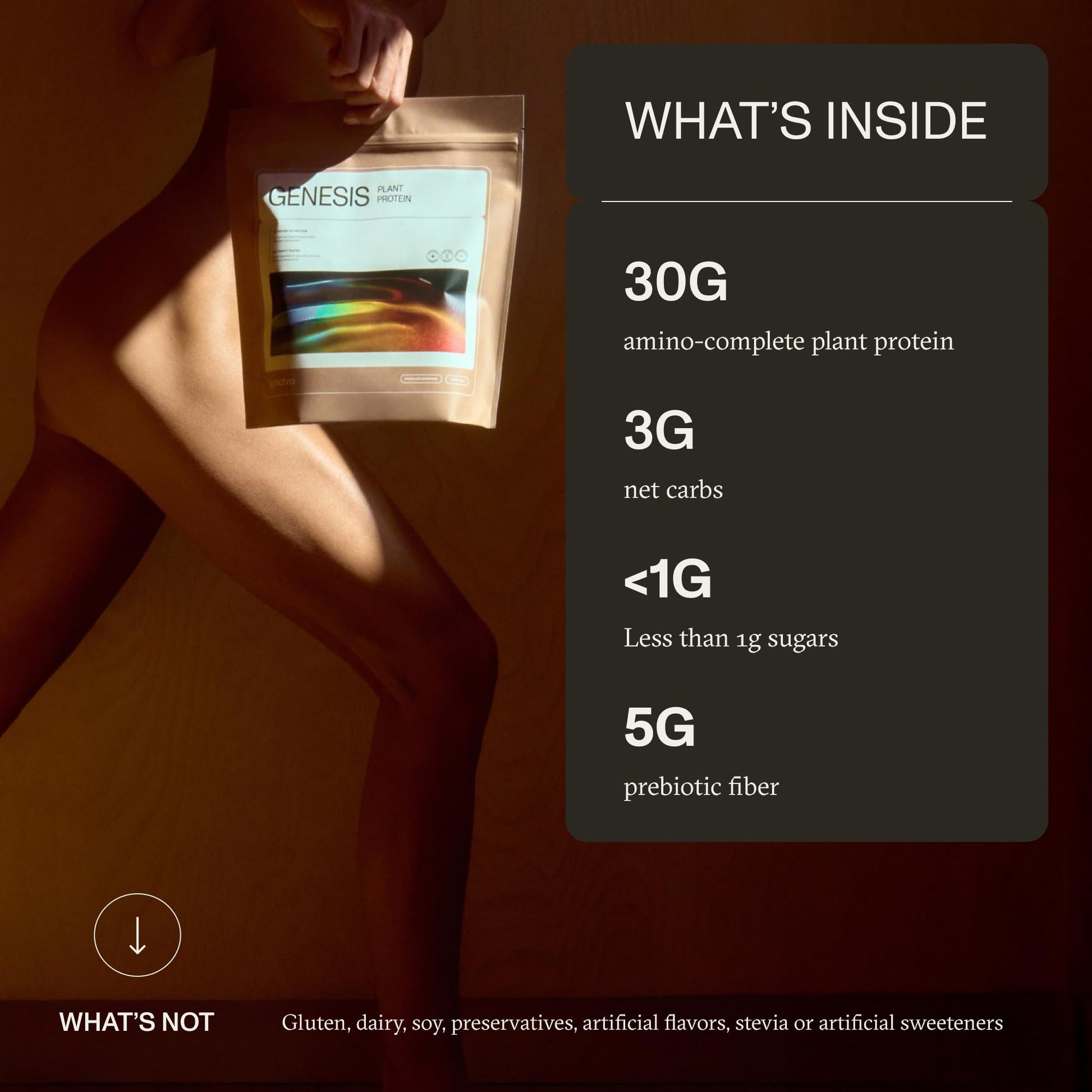 - COMPLETE PROTEINS: The plant protein blend in Synchro Genesis is highly digestible and formulated to provide an ideal amino acid profile. One serving of Genesis contains 30g of amino-complete plant protein.