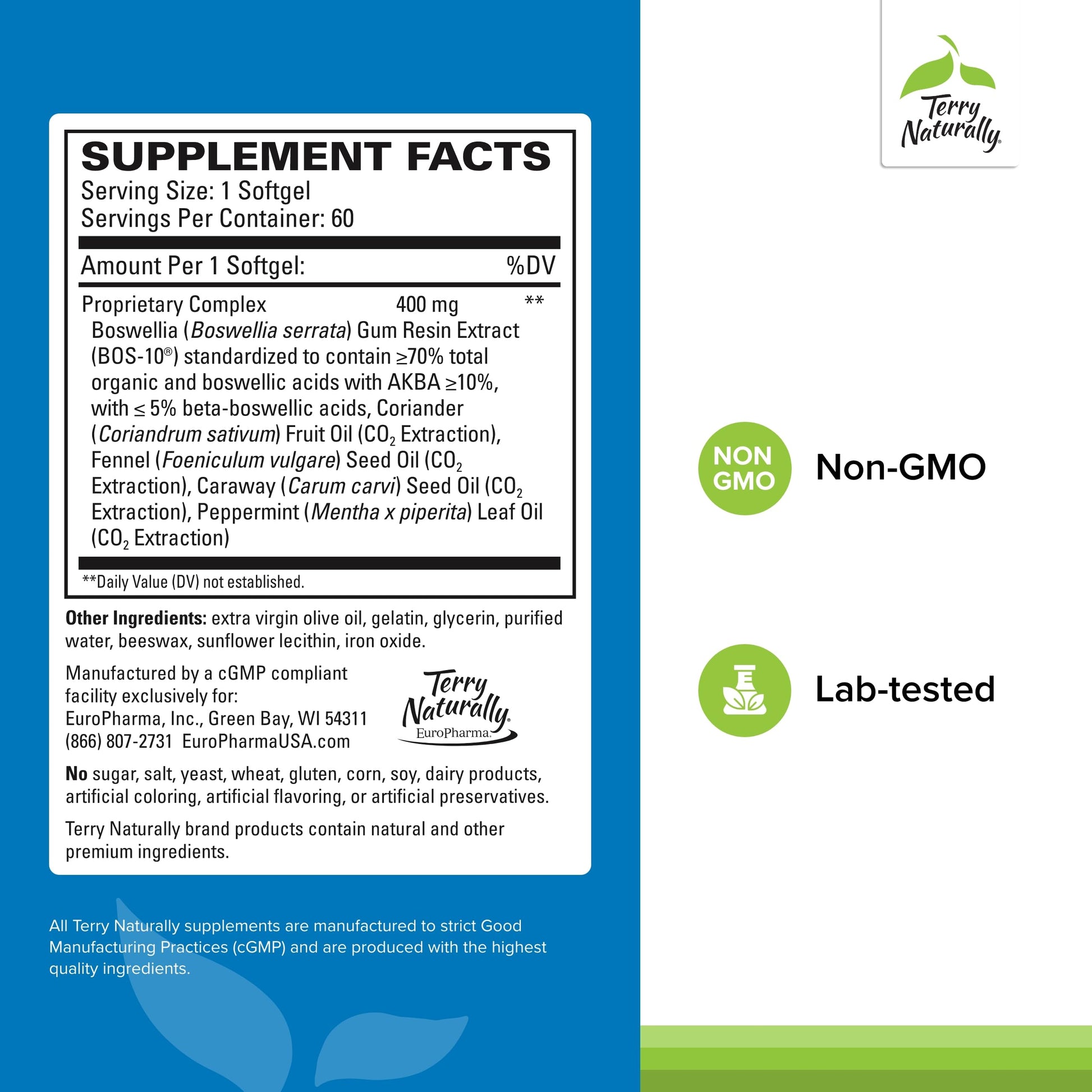 Terry Naturally BosMed Intestinal Bowel Support - Digestive & Intestinal Support Supplement - Gut & Bowel Health Supplement - with Coriander, Fennel, Carraway & Peppermint - 60 Softgels