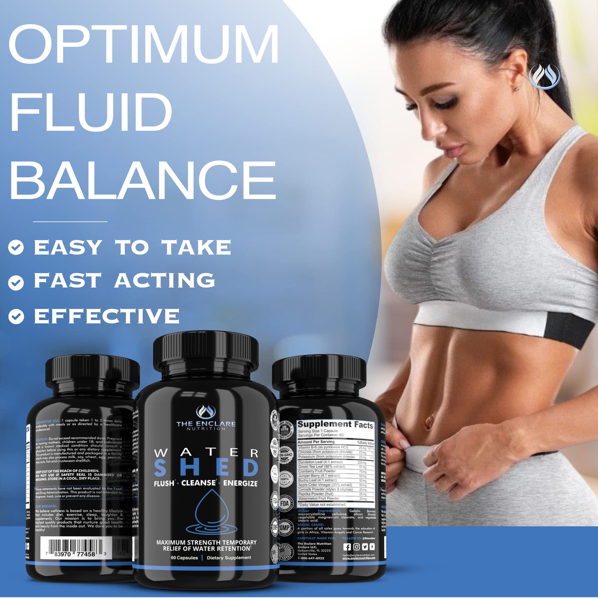 - WATERSHED YOUR ENERGY AND WEIGHT JOURNEY COMPANION: Stop Being Weighed Down By The Water And Feel Lighter. A Pound Of Water Weighs The Same As A Pound Of Fat - Adding Our Water Pills Will Assist In Your Natural Metabolic Processes, Boost Metabolism, And Improve Energy Levels. Watershed Helps Maintain Sodium Balance While Flushing Away Excess Fluid And Giving You Relief From Puffiness, Swelling, Bloating, Edema And Unwanted Weight Gain. Pair With Enclare Shred, Sculpt And A6burn
