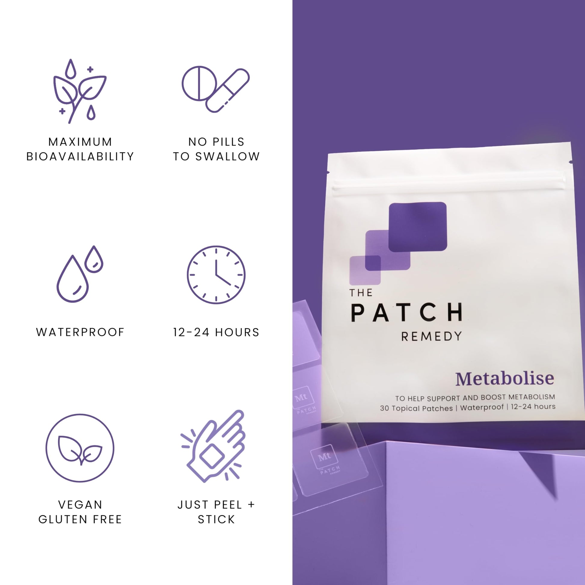The Patch Remedy Metabolise Patches | 30 Topical Patches | Waterproof | Ingredients Including 5HTP, Guarana Extract, L- carnitine and Lecithin | Lasts 12-24 Hours