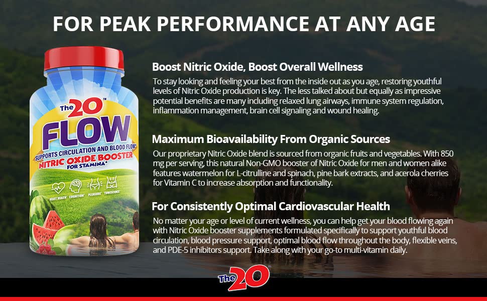 The20: Flow - Nitric Oxide Supplement - 60 Capsules - L-Citrulline from Organic Watermelon, Organic Spinach, and Organic Acerola Cherries - for Heart, Brain, and Overall Health - No Gluten