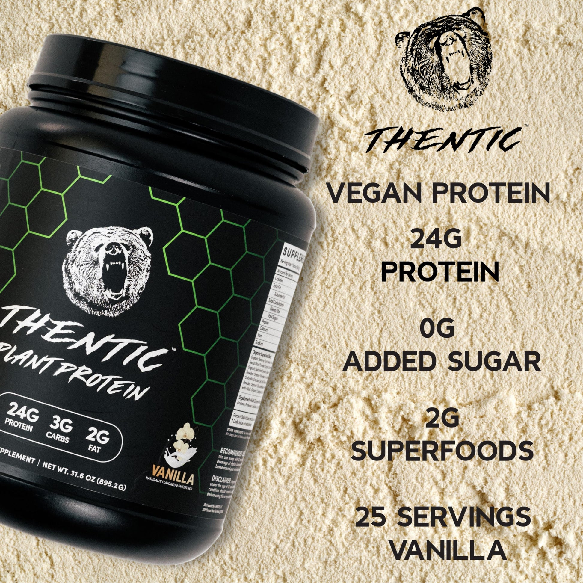 THENTIC Plant Based Protein Powder - Non Dairy Vegan Protein, Zero Artificial Ingredients, Soy&Gluten Free,No Added Sugar, 5.8g BCAA,Digestive Enzymes,Organic Superfoods.25 Servings (Vanilla) 1.9 lb