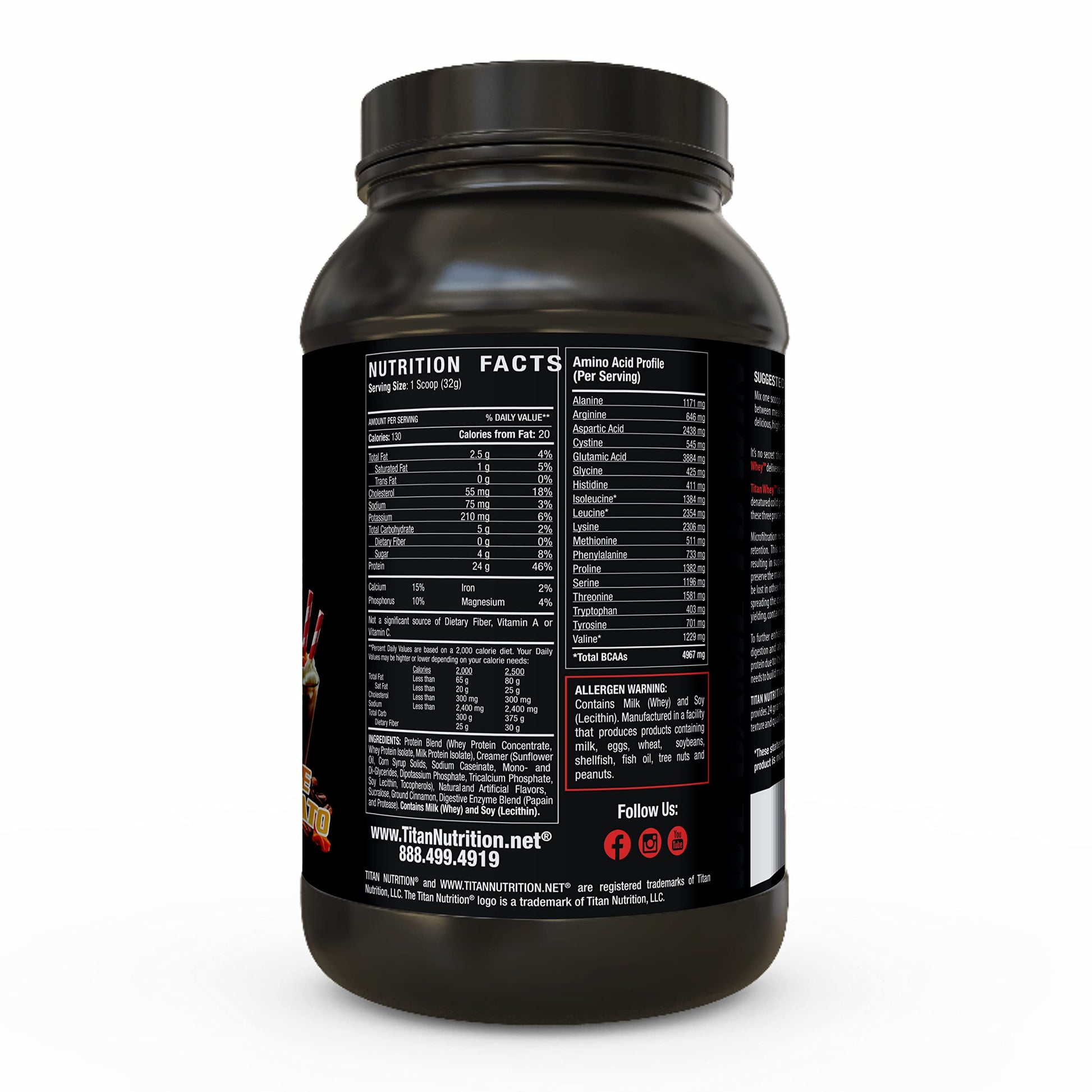 - GROW MUSCLE MASS: With its full-spectrum amino acid profile-including whey protein concentrate and isolate, Titan Whey makes it easy for you to hit your daily protein goals. A single serving gives you 23 grams of essential, non-essential, and conditionally-essential amino acids that support muscle growth.