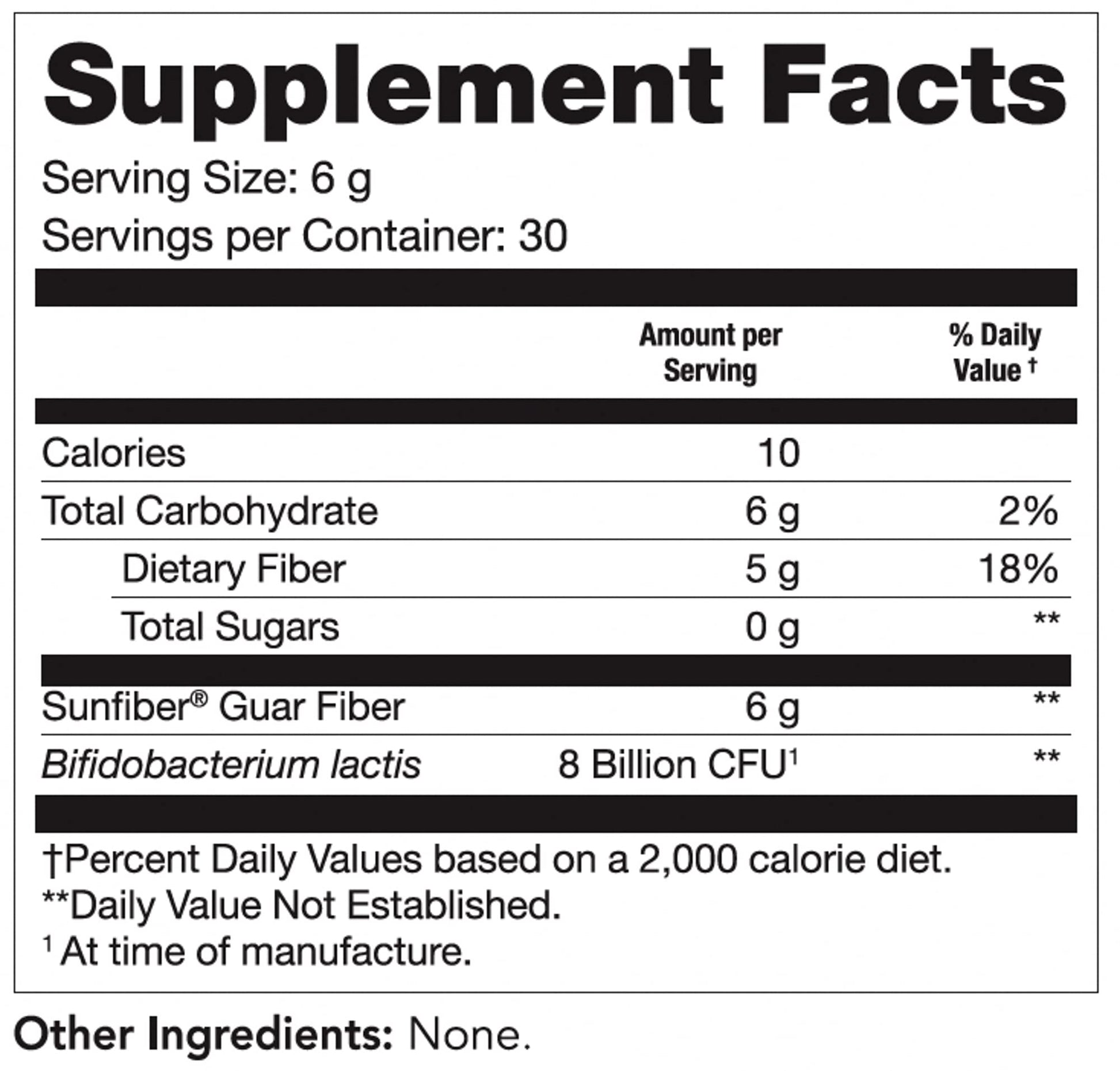 - Probiotic Support: Active probiotics (bifidobacterium lactis) work in harmony with the prebiotic Sunfiber fiber to nourish beneficial gut bacteria, promoting a healthier digestive system and improved gut function*