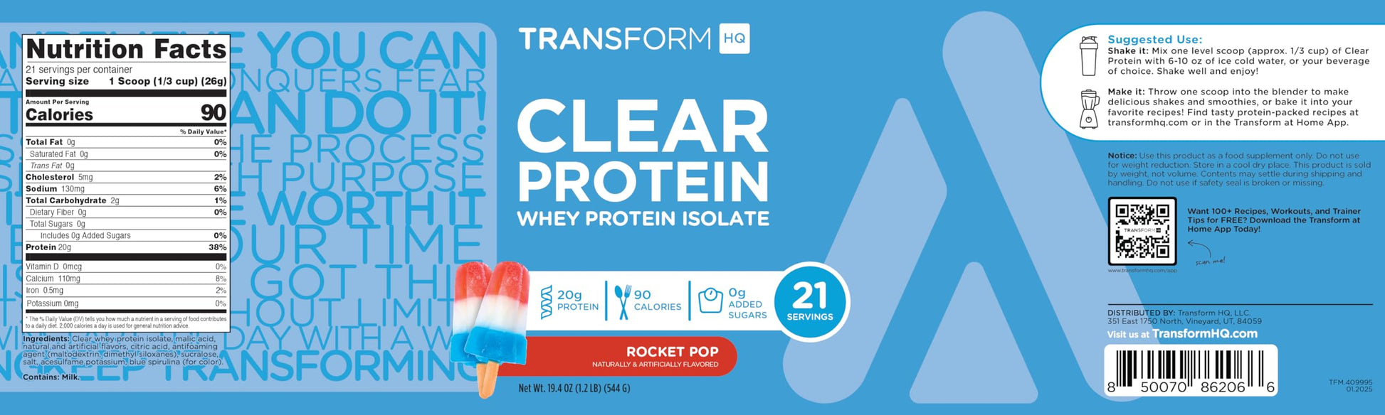 TransformHQ Clear Whey Protein Isolate (WPI) (Rocket Pop Flavored) 21 Servings - 20 Grams Protein Per Serving