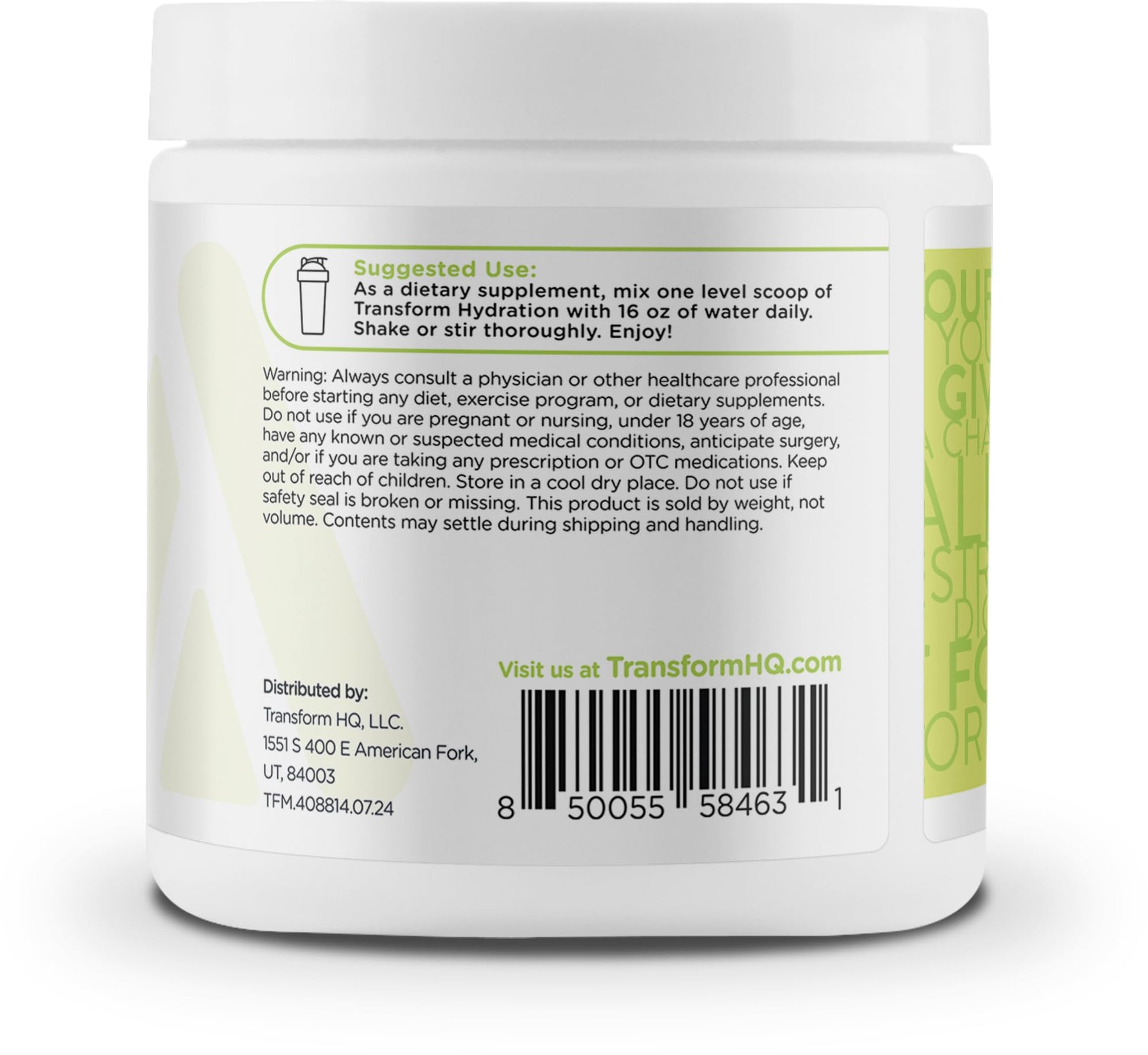 TransformHQ Hydration Electrolyte Drink Mix (Coconut Lime Flavored) 42 Servings Per Container