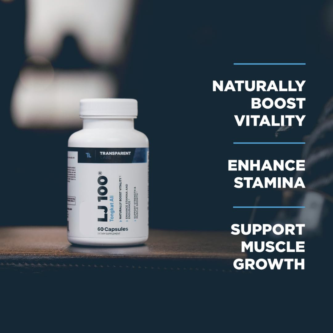 Transparent Labs LJ100 - Eurycoma Longifolia Tongkat Ali Extract 100mg Capsules for Lean Body Mass, Strength, and Performance Enhancement - 60 Count