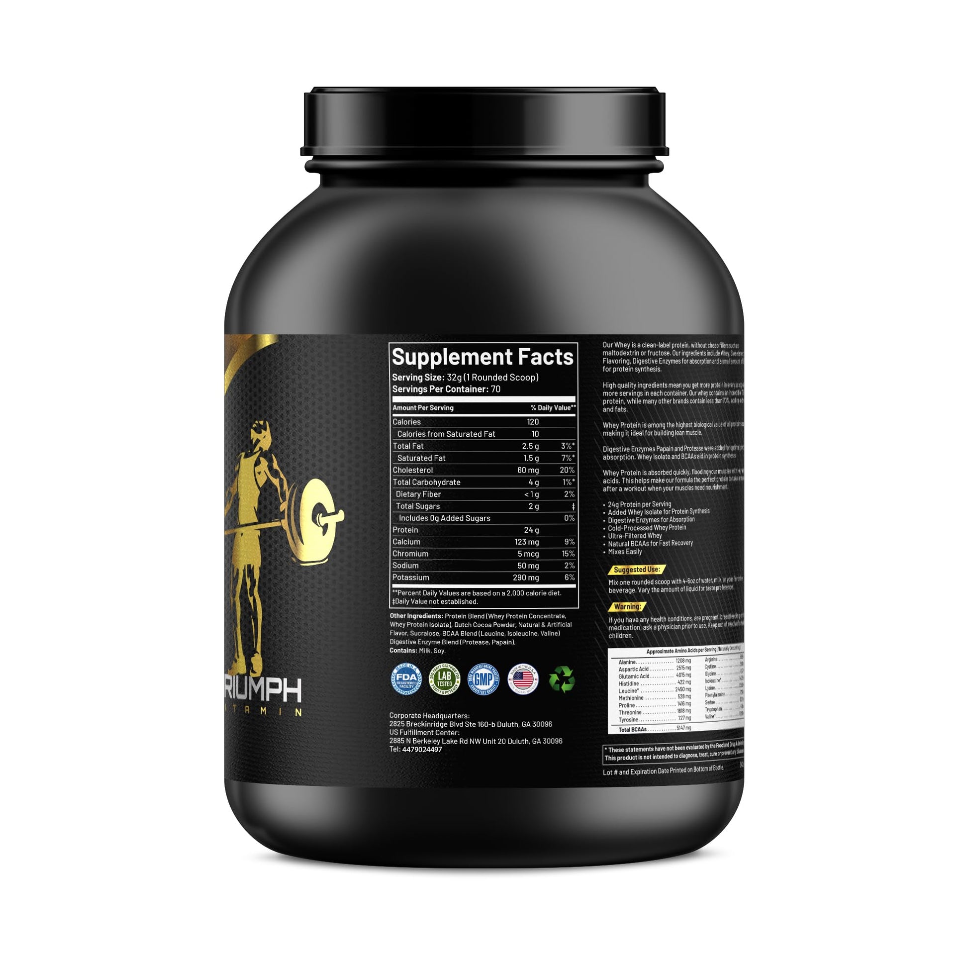 - Triumph Vitamin 5lb Whey Protein Chocolate - 70 servings, Protein,whey,Extreme Milk Chocolate Unit count type: gram Fast-absorbing whey protein with whey protein isolate as the main ingredient helps build muscle and helps with muscle recovery
